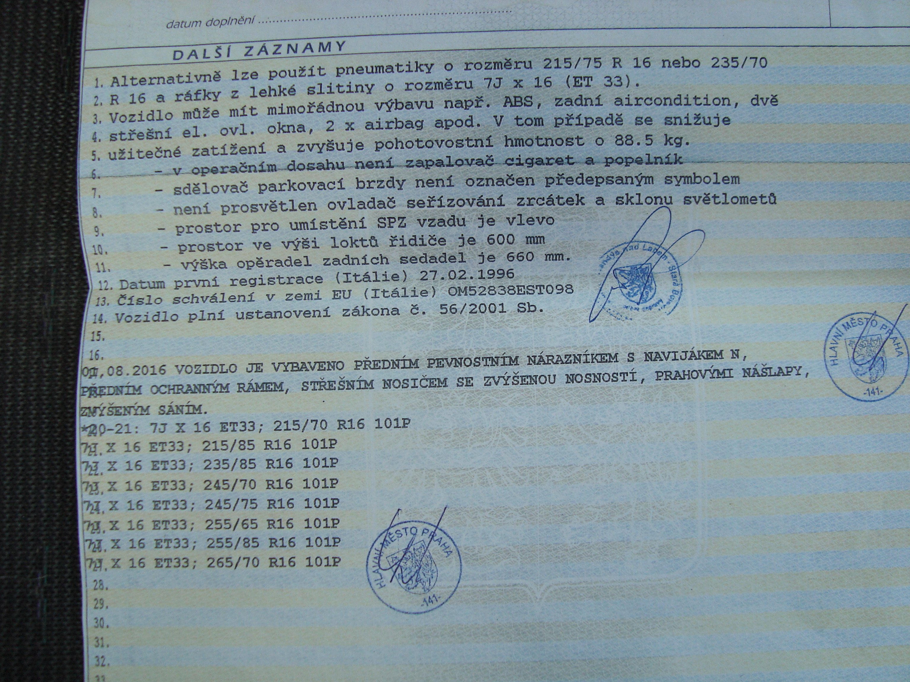 Rok výroby 1996 najeto 195 000.Dovoz z Itálie 2010.V ČR jsem první majitel.Dvě střešní okna.Auto jsem měl udělané na cestování takže podle toho postaveno.Přední pevnostní nárazník s navijákem momentálně bez navijáku je v opravě a nevím jak to dopadne.Zadní pevnostní nárazník s držákem na rezervu ...
