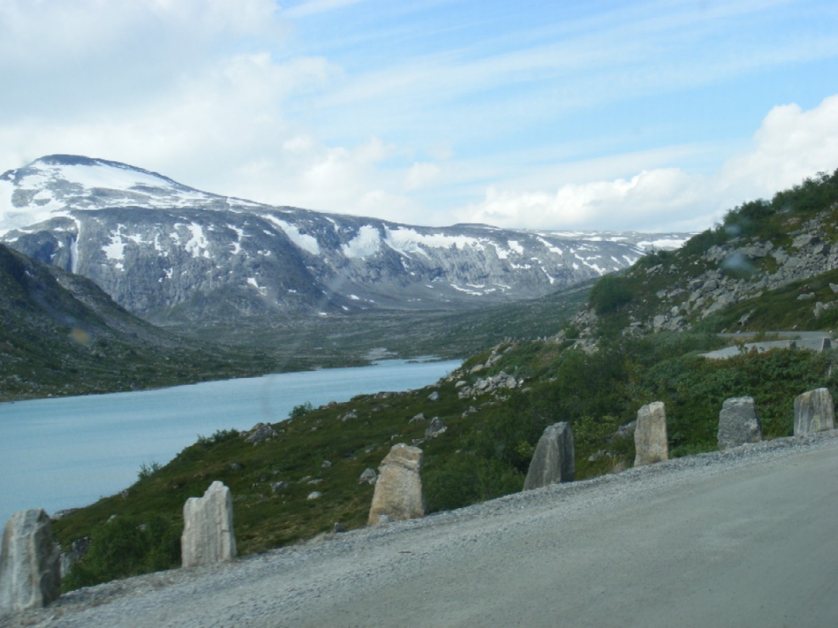 NE musíš si tu mapu víc zvětšit a je tam v Grotli odbočka na silnici č 258 a je označená jako gamle weien. Snadno se to přejede taky jsem si musel couvnout. Je to tam paráda a dá se i sjet bokem na starší neudržované cesty. Tam jak je na fotce ten můstek tak tam byl asi kamenolom. Je tam těch možností mnohem víc. Nebojte se sjet mimo silnici jen pozor na cesty, které jsou označené privat a nebo je na nich zavřená závora. Norové si svůj majetek brání dost razantně. Krásná cesta je i z Ardalu do Laerdalu je to také původní trasa přes hory a je tam moc pěkná vyhlídka. Vykašlete se na 24km dlouhý tunel a jeďte tady tudy. Tunelů si tam užijete až až. Další krása je z Rysstadu na silnici č.9 do Lysebotnu. Jsou to vesměs silnice které jsou v mapě označeny bíle, vůbec se jich nebojte je to úžasný zážitek a hlavně mimo hlavní turistické trasy. Jel jsem to v obráceném pořadí než jsem to popsal. V Lysebotnu je kemp a jediná cesta odsud je trajektem a nebo zpátky na ten kopec. Dolů z toho kopce za námi jeli kluci na skejtech všech těch 27 zatáček + 2 v tunelu, na helmách měli kameru tak to celé natáčeli. Zvětšit mapu jak jen to jde a jak některá silnice někam vede tak ji použijte, ty přerušované jsou bez asfaltu.