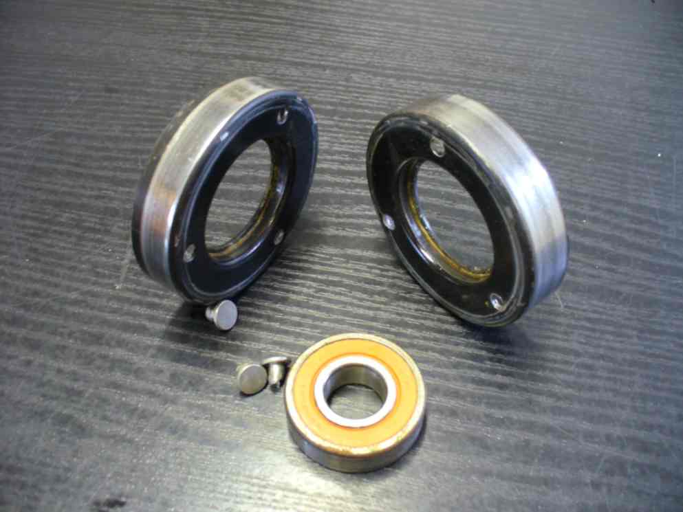 Tak ta byla bez problémů rozebraná jsou to dvě snýtované půlky mezi nima ložisko koupil jsem ho za 185,. s DPH číslo je 6203-2RSH/C3 Miloš II