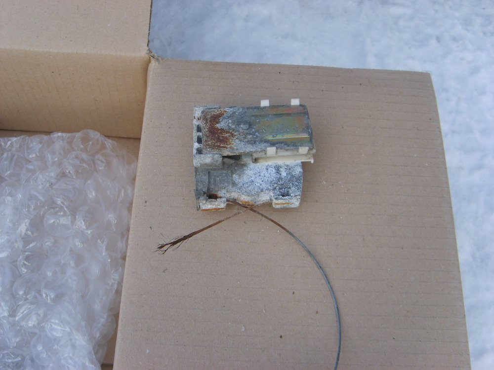 Jen pro zajímavost jsem nafotil část stahovačky po demontáži. Lanko je ocelové, koncovka hliníková. Rok výroby vozu 12/2003.