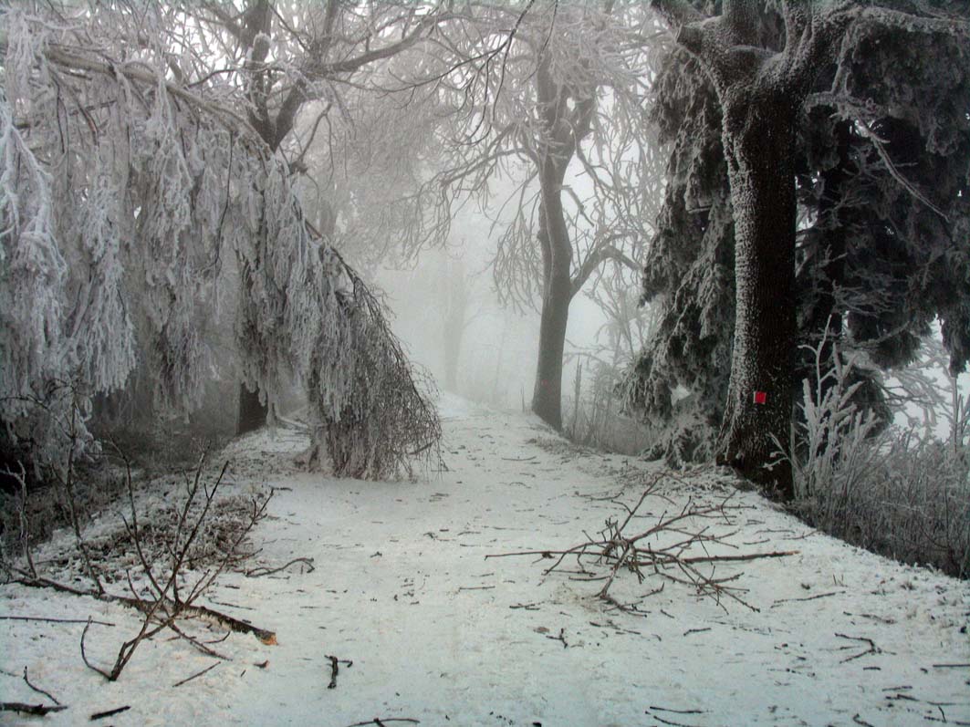 Přesunuli jsme se na tu levou cestu a pokračovali v krásné projížďce v chumelenici...