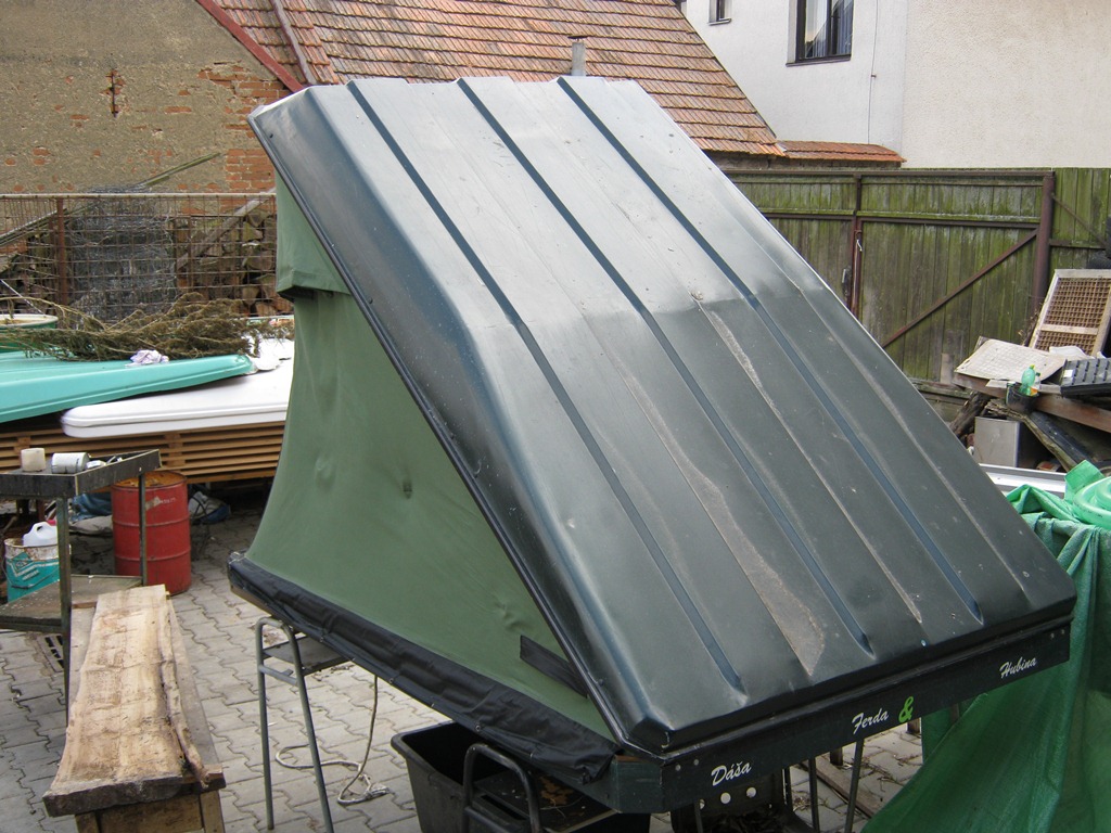 Prodám střešní stan. Je vyrobený s pozinkovaného plechu, vodotěsné překližky, celty atd.