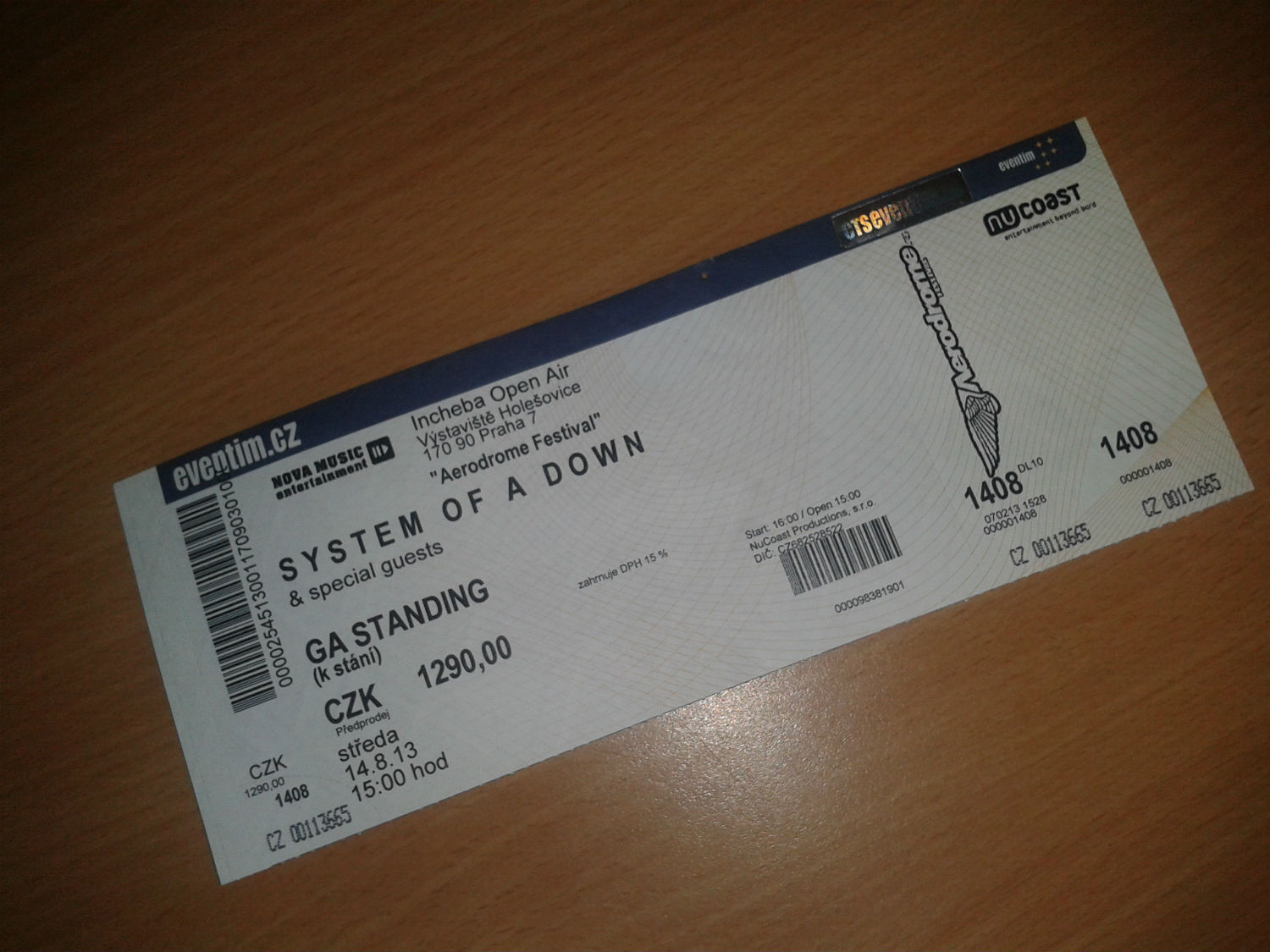 Re: Lístek na koncert System of a down 14.8. Praha