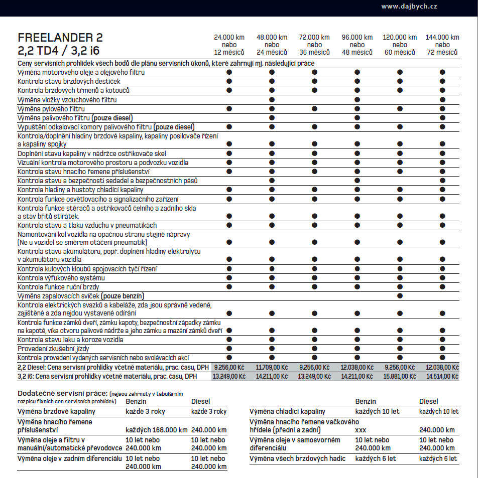 Ahoj, můj roční nájezd by měl být 30-35tkm a to z 95% po normálních silnicích. Vůz si kupuji jako prostředek na ježdění do práce, občas na výlety a dovolenou. Především od něj očekávám slušnou filtraci našich nekvalitních silnic a dobré vlastnosti přes zimu (nebydlím na horách). Cíl je, aby vůz vydržel do 8-9ti let stáří a nájezdu cca 200tkm bez nějkých zásadních oprav (nemyslím brzdy, oleje, filtry apod. spotřební věci). Bojím se především turba a převodovky (aut.). Také by mě zajímalo, kdy se mění rozvody u TD4 118KW a koli stojí?Hýta píše:Ahoj, co se týče toho na co si dávat pozor, tak je toho na fóru napsáno celkem dost (visko, IRD...). Myslím si, že některé zkušenosti jsou stejně nepřenositelné a nejlepší by bylo, kdyby s tebou na zkušební jízdu a prohlídku šel někdo, kdo už fríčko nějakou dobu má. Já jsem ještě celkem LR zelenáč