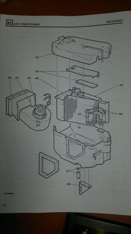 200tdi nebo možná starší Defendery, nebo třeba V8 - tady nevím, mají chladící výměník klimatizace integrovaný v motorovém prostoru do jedné skříně s výměníkem topení a ventilátorem. viz. obrázek.
