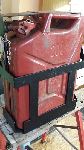 Držák pro jeden 20 litrový kanystr, uzamykatelný. Kanystr je v držáku uložen na ležato. Pro montáž na střešní nosič FrontRunner