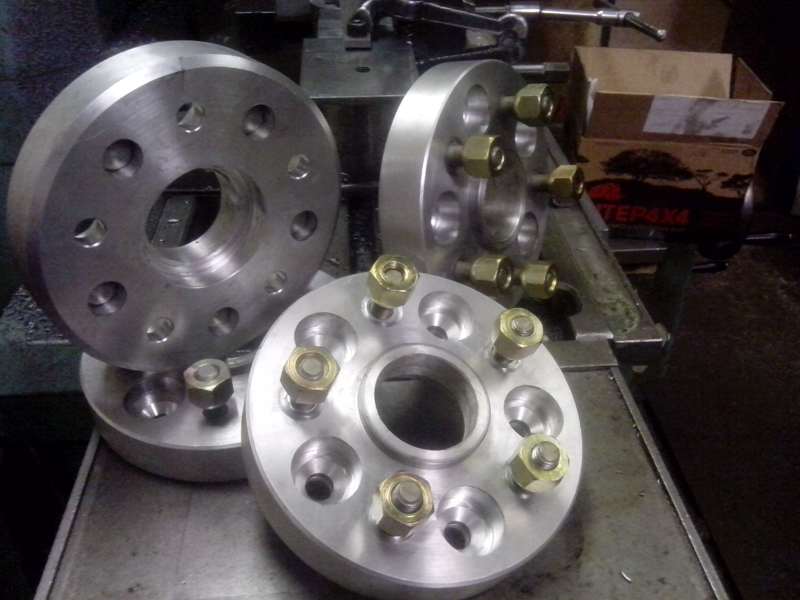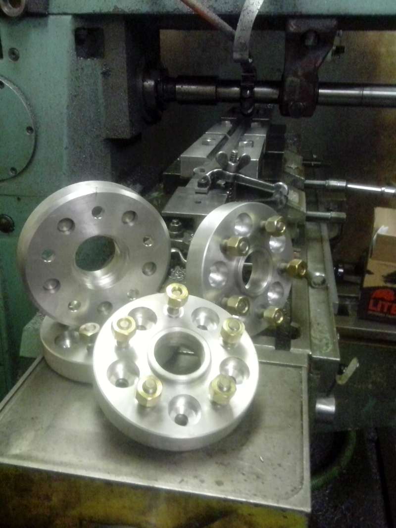 Tak jsem se po delší době konečně dokopal k dodělání duralových rozšiřovacích podložek. Takže je hotovo,ráno to nahodím na auto. Nejdražší na tom byly štefty a matice,svoji práci nepočítám,protože mně to baví. Jinak,kdyby si někdo chtěl podložky vyrobit,můžu dát výkres. Jen malinký upozornění! Na podložky 30,0 mm jsem musel čelně zkrátit štefty co jsou origo na autě o 0,75 mm (free 2002),protože byly shodně vysoký s 30,0 mm podložkama,takže hrozilo opření čel stávajících šteftů o dosedací plochu rozšiřovací podložky. Nevím,jestli mám nějaký divný free,ale kdybych si to vyráběl příště tak už vím,že šíře podložky 31,0mm je tak akorát :yes . I přes Mad Tomovi pochybnosti jsem osadil vnější průměr 64,0 mm ocelovým pouzdrem (nalisováním) kvůli možnému opotřebení které by mohlo vzniknout častým přehazováním kol,no asi je to zbytečný,ale můj smysl pro detail rozhodl pro ocel.