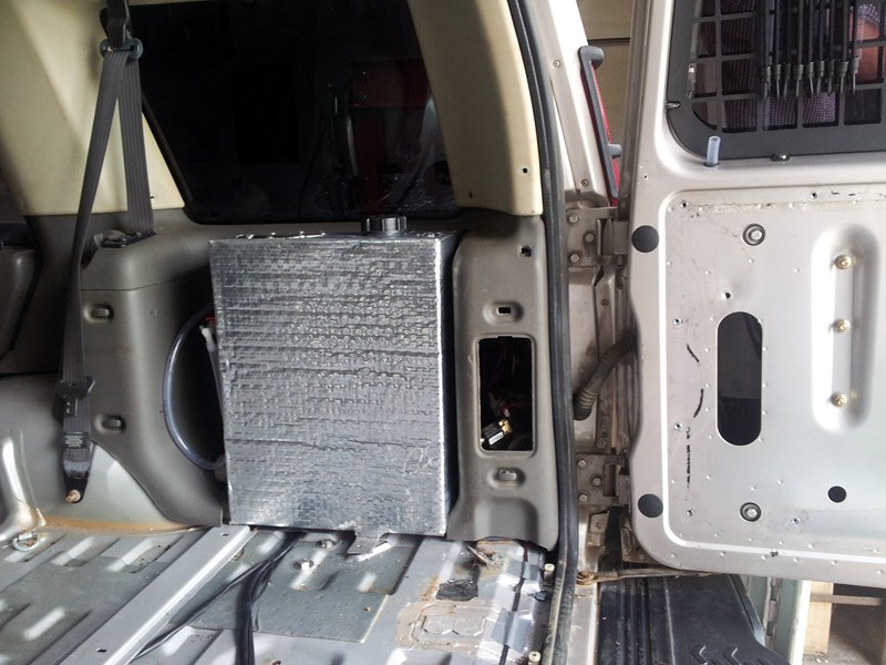 Prototyp nádrže s 300W topnou patronou a termostatem je ode dneška provizorně v autě. Zatím aspoň nějaké foto nádržky...