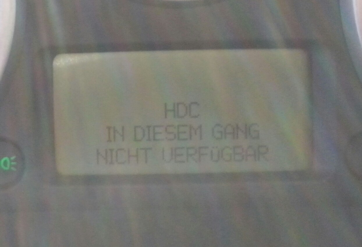Píše to: HDC není při této zařazení rychlosti k dispozici.