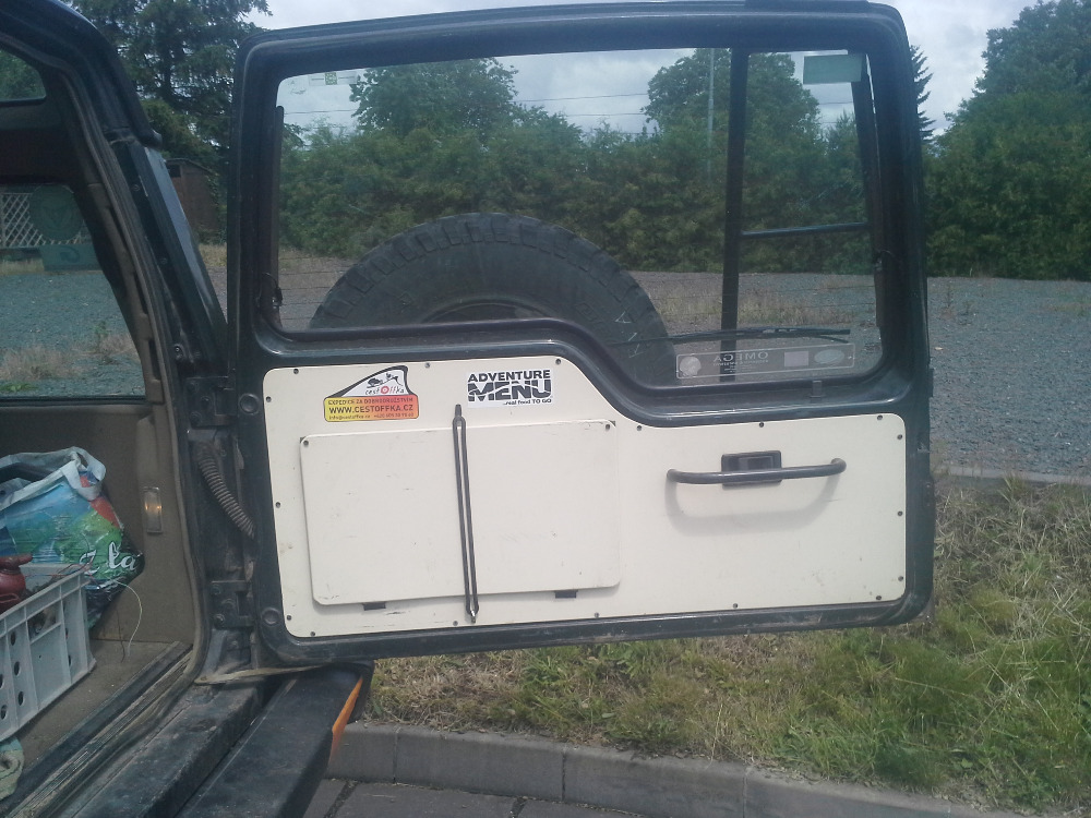 prední trubkovej naraznik s "ramem" chrání svetla i blinkry navijak 13500lbs (rozbita dalka a nefunkční kabelový ovladaní, pridavný dalkový,snorchl od czapa, flexi 50mm lemy ty zadni si myslim oproti tomu co sem mel možnost videt,hodne povedene provedený (jak zapravený dveře tak zadní přechod podbehu a lemu) hliníkový plechy kolem dokola i pate dveře v cerným komaxitu a na kapote tež pevnostní naslapy s trubkou (po otevření dveří tvoří trubka s naslapem rovinu),vzadu origo naraznik delaný festovní kryt nadrže,delaný nový držak rezervy a zaroven z boku hiliftu (z duvodu zmeny polohy rezervy) a zrovna sem včera delal žebřík jeste ho nemam v laku,zadní svetla 200tdi, tapec patych dveří z hladkeho hliniku s odlopnou poličkou,co se tyče podvozku tak cca 4 roky starý (davaly se tam fungl nový) komplet brzdiče a kotouče na celým aute z defa 110 brzdí to fakt skvele,panceroví delsi brzdoví hadičky goodride 3x,zadní brzdy v medi ,vzadu kardan z 200tdi takže dva křížky, v predu z nejakýho defa s vetšímy křížky nový tlumic řízení premisten na stouchacku,prevařený mangelsy s 235/85/16 bf mt