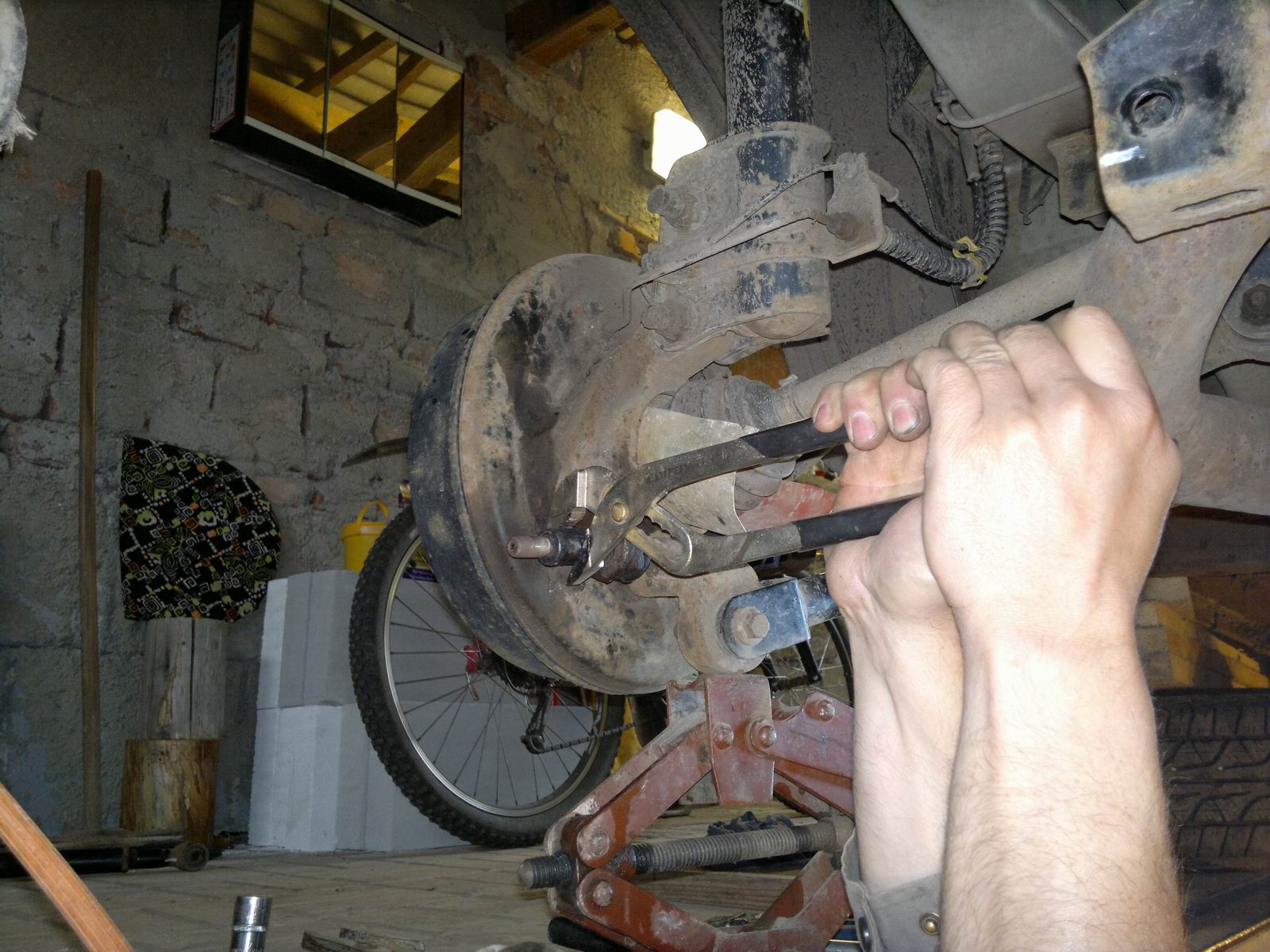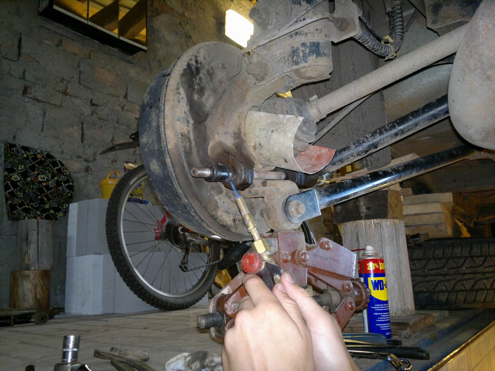 Zdar :cool , jen krátký návod,. Zapomeňte na vytažení šroubu bez nahřátí, jinak urvete hlavu, nebo něco zkurvíte. Je to nadoraz zarezlé jak v silenblokách tak v těch dvou úchytech na bubnu kola. Dělal jsem to dvě odpoledne, opravdu hodinářská práce, ohřát rozhýbat po milimetrech, prostříkávat Wd čkem, zážitek. Podle mne v servisu bez šance, tam by uřízli šrouby a stálo by to ranec :bandit I když by se dalo polemizovat o tom, zda by nebylo lepší dát ty dlouhé šrouby nové, poněvadž v těch zarezlých místech jsou narušené a ve všech uloženích mají vůli. Hodně zdaru :yes