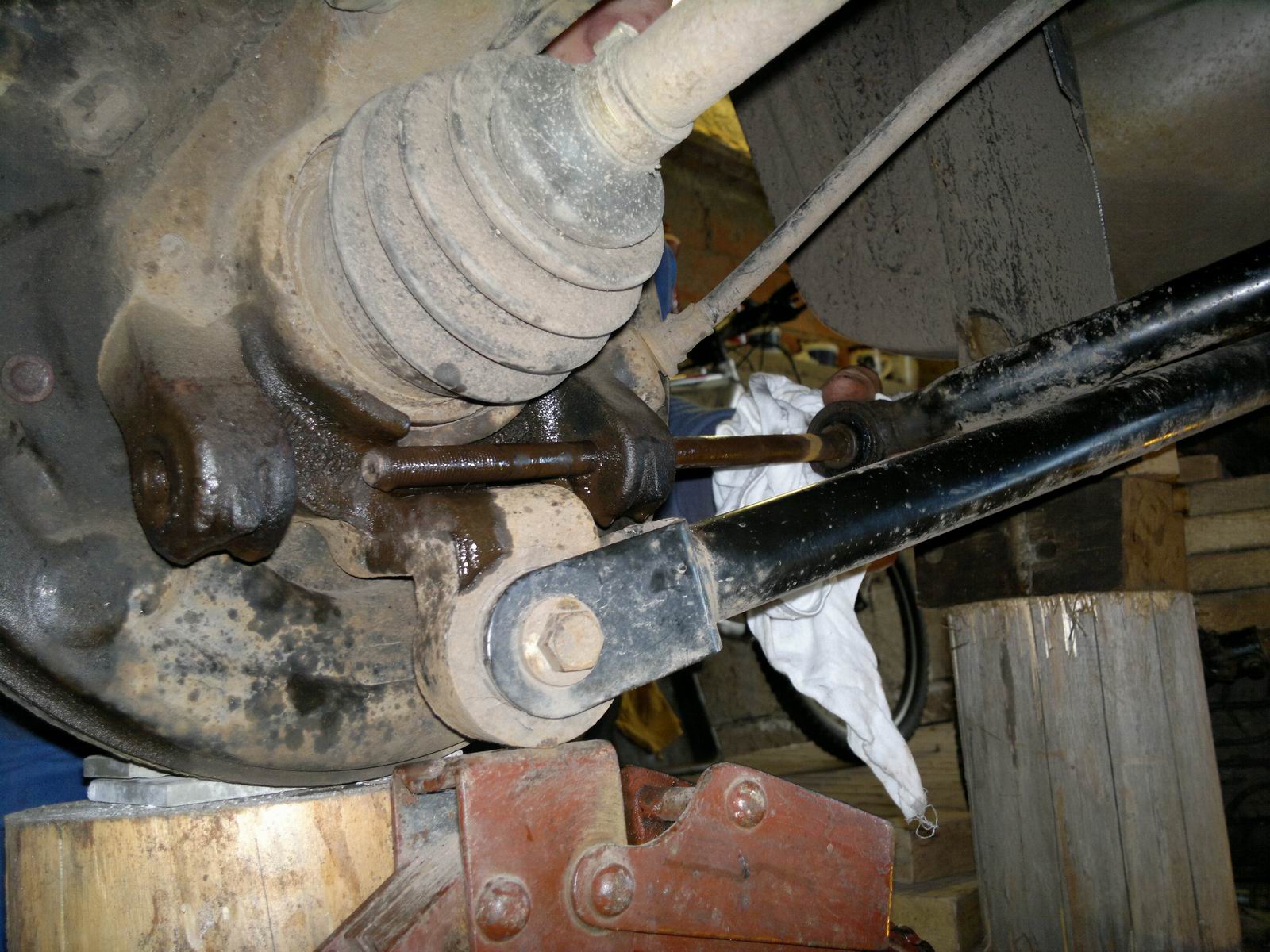 Měnil jsem silentblok v rameni na D2 - 2 šrouby se 3 šli v podhodě povolit, třetí, ten nejdelší byla natolik zarezlej v silentbloku, že jsem ho musel uřezat z obou stran a následně odvrtat - silentblok byl v pohodě a nechtěl jsem ho zničit. Před odvrtáním jsem zbytek šroubu chtěl vylisovat na lisu, ale naprosto to nešlo - bylo to zarelé tak pěkně, že mi 20t lis nestačil :shock: . Po podélném odvrtání už to chtělo jenom 10t, aby povolil.