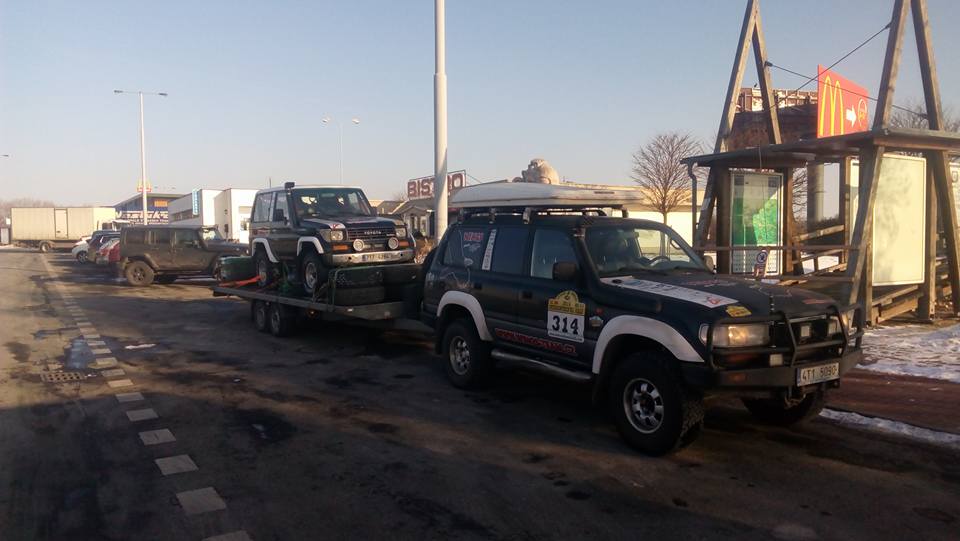 Dnes jeste stale nekoncime. Wramgler rozlomena predni naprava, pajero zmackamy predek po skoku. Patrol utrhly tlumic, toyka problem s naftou....