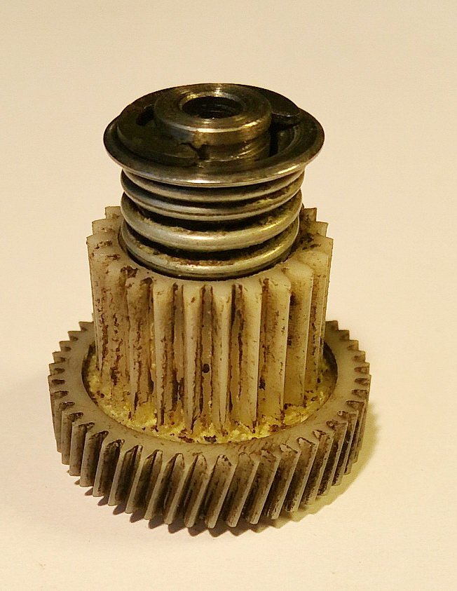 Problem je tedy v tom, ze v převodovce moturku EPB je pritlacna spojka, která při prekroceni limitu sily zacne preskakovat (coz je zdrojem toho priserheno zvuku). Sila je definovana přítlačnou pruzinou. Tu přes závlačku drzi krcek ozubeného kolecka v one převodovce. Drazka v krcku drzici závlačku je poddimenzovana a casem se ulomi. Po ulomeni se pruzina opre o vnitrek housingu převodovky, který je o několik milimetru dal. Tim se pritlacna sila vyrazne snizi a spojka preskakuje mohem dřív. EPB pak rve uz celkem pravidelne.