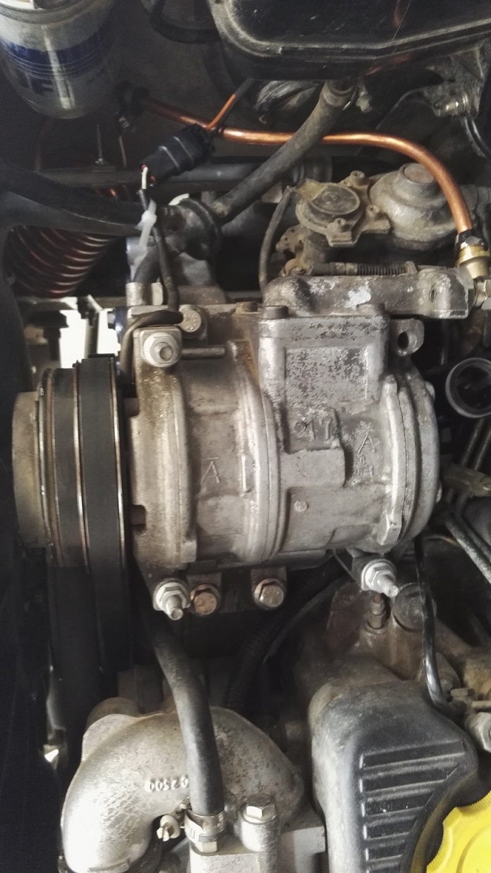 Tak jsem po mesici konecne dobastlil reseni pro dofukovani. Pouzil jsem origo AC kompresor i s platformou a namontil 10l hlinikovej vzdusnik od AirLift. Nejvetsi vopich byl s pripojenim sroubeni na prirubu kompresoru, neb jsem nemel ty protikusy. Nechal jsem teda do kompresoru udelat zavity a sroubeni od jednoho sikovnyho pana v Letnanech (diky Martine za tip:)). Na vstup jsem dal nastavitelnej primazavac oleje a filtr, na vystupu pak 3m medeny trubky stoceny do zavitu kvuli chlazeni pac vetsina komponent dal po proudu zvlada max 60 stupnu. Dale tam mame odlucovac oleje a zpetnej ventil s upoustecem. Potom uz jen tlakovej spinac a vzdusnik. Do kabiny jsem vytahnul vypinac, kterym ten kompresor zapinam a vypinam.Kompresor je fakt silnej, na volnobeh se ten vzdusnik naplni na 9 atm za 20 vterin, takze uvazuju tam dat jeste regulator tlaku a da se na to pripojit ruzny vzduchovy naradi. Prikladam par fotek pro inspiraci.