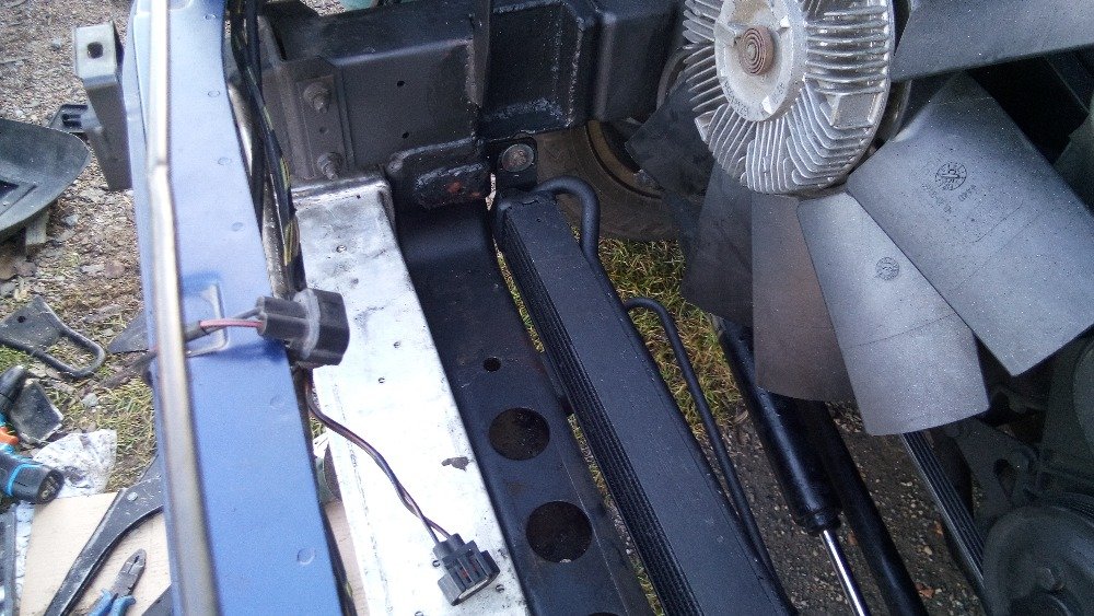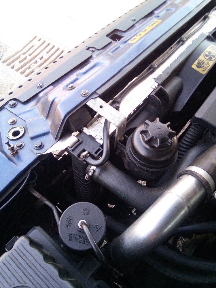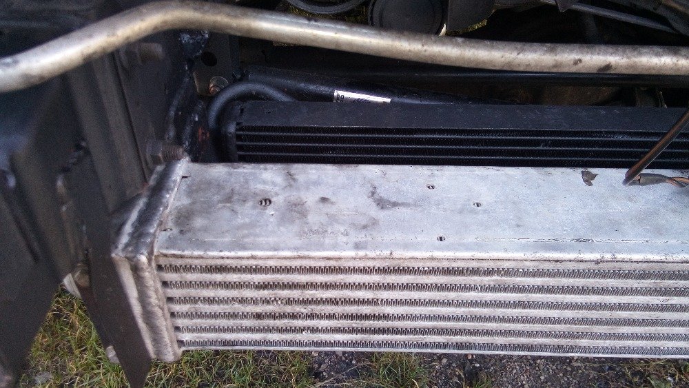 Ten původní chladič co má oba vývody nahoře,nemůže nikdy fungovat,protože ta vřelá voda proteče vrchem z jednoho vývodu do druhýho,v chladiči žádná přepážka není a teplá voda jak známo dolu nepoleze,ledažeby to v anglii měli opačně,konstruktér toho chladiče by měl dostat trubkou přes prsty,nebo se vrátit do školy,Hlavně motory tds jsou známé prudkým nárustem teploty,proto v bmw je el.vrtule před chladičem na klimu spínaná jednak po zapnutí klimy,ale hlavně čidlem přímo v hlavě,nikoliv v chladiči,to vše aby vše začlo rychle a v čas.u P38 ty dva srandovní ventilátorky,uchladí pouze klimu,navíc je ovládá snímač teploty chladiva v klimě,přehřátý motor se musí spolehnout pouze na visco vrtuli,která spíná pozdě,protože do chladiče ta teplá voda vleze až když se motoru zdá o čertech.Tu el.vrtuli a klimachladič musím ještě dořešit,ale určitě velký větrák zase z BMW spínaný jak klimou,tak čidlem v hlavě.Jezdím s vlekem žádný kopec mu nepovolím,dřív jsem musel.Takže chladič vody nový značkový třeba Nissens cca 3500kč,hadice orig.bmw,horní cca 1000kč,dolní cca 700,-pod chladič jsou potřeba gumové špalíky a plastové držáčky na nosníky a horní obdélníkové gumové vložky pro uchycení,vše z bmw 525tds e34 rok třeba 94.u nového chladiče ty držáky nejsou,ale starší chladiče bývají zarostlý-nekupovat.Držáčky sehnat na vrakáči nebo obj.u bmw,katalog dílů s klasickým stromem je na www.bmwklub.cz v levém sloupci ETK.Na vývody z manuální převodovky jsem napojil olejový chladič přez běžné hydraulické šroubení upravené na soustruhu.Chladič je původně olejový z motoru bmw 750i e32,jde tam dát jakýkoliv hlavně pozor ať v sobě nemá termostat,náplň v manuálu o cca 1L výce- další výhoda.Cooler mám v nárazníku,nejezdím v terénu,může být i v masce,ideálně e39 530d,nezakreje celou masku a lépe se trubkama obejde vodní chladič,který je o něco širší.Plastová sahara jde upravit ta původní.Veškeré držáčky dělané bez výkresu a na místě z časových důvodů,přesto po otevření kapoty docela koukatelné.Když se mi sem nepodaří dostat fotky,protože to asi neumím,pošlete někdo kdo to dovede svůj mail smskou na 728 228 135 a já mu je přepošlu.