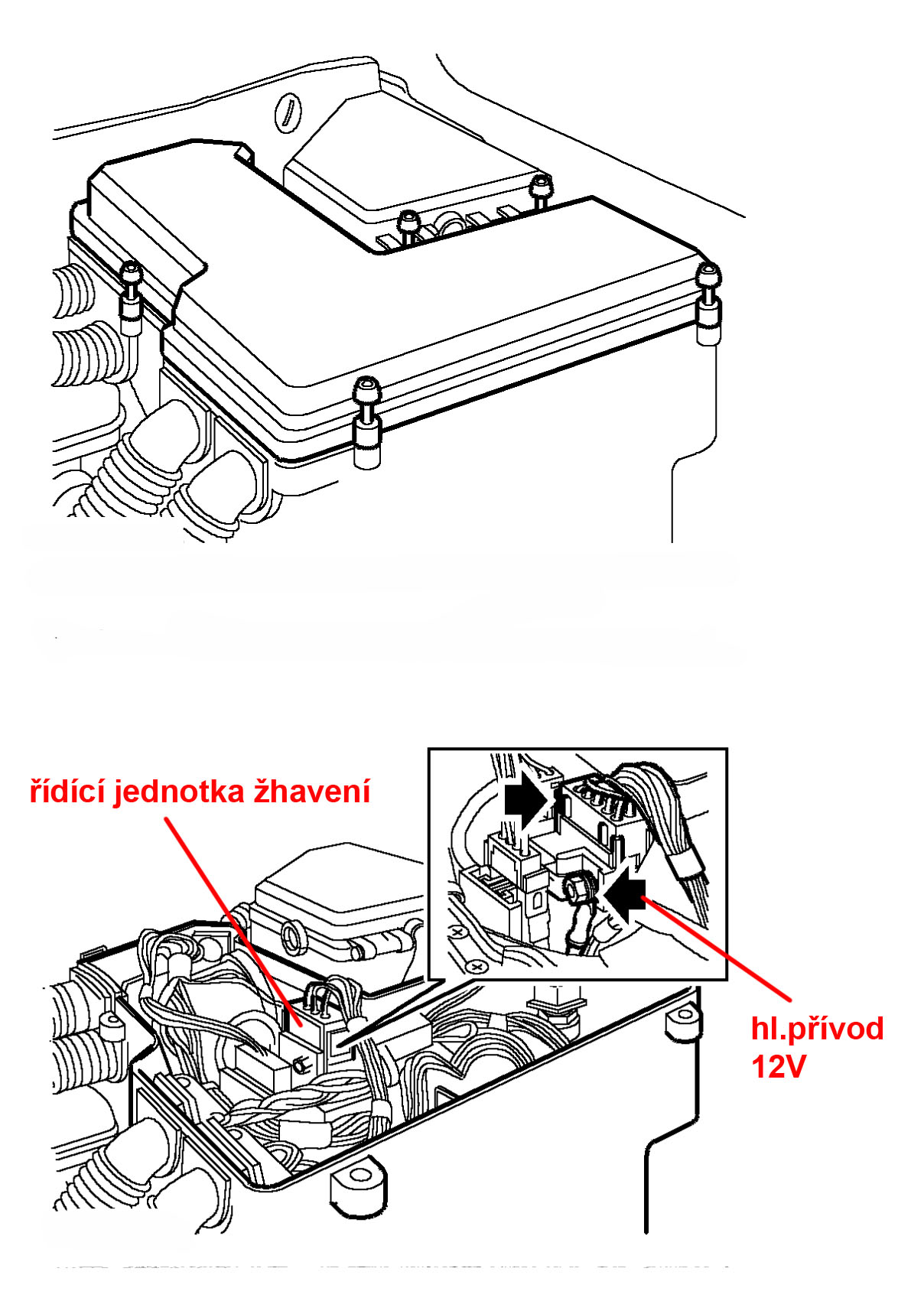 Relé žhavení je součástí malé samostatné řídící jednotky žhavení a ta je boxu s ŘJ motoru