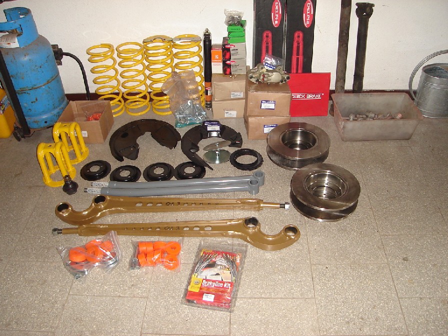 Eliott použil 4x zadní pružinu Tatra 603, odskoušeno na předchozím RRC, cca +10 cm. Tentokrát jsem použil i korekční ramena, přední 6°. Dělám to při chvilkách, sem tam něco vyměním. Teď mně čeká to zadní áčko a pak kardany, budu dávat dvojitý kříž na přední i zadní kardan.