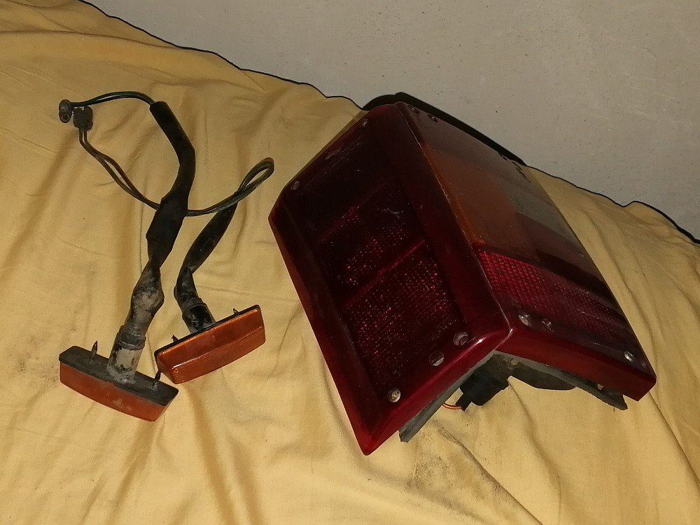 Z doby, kdy jsem měl VM-ko, jsem v garáži na dně sušil pár pokladů. Světla mají nějaké drobnější vady. Sloupek řízení je naprostém pořádku a ve stejné barvě mám ještě hezký kryt pojistek. Nejraději bych se zbavil všeho najednou, ale počkám na nějaké nabídky.