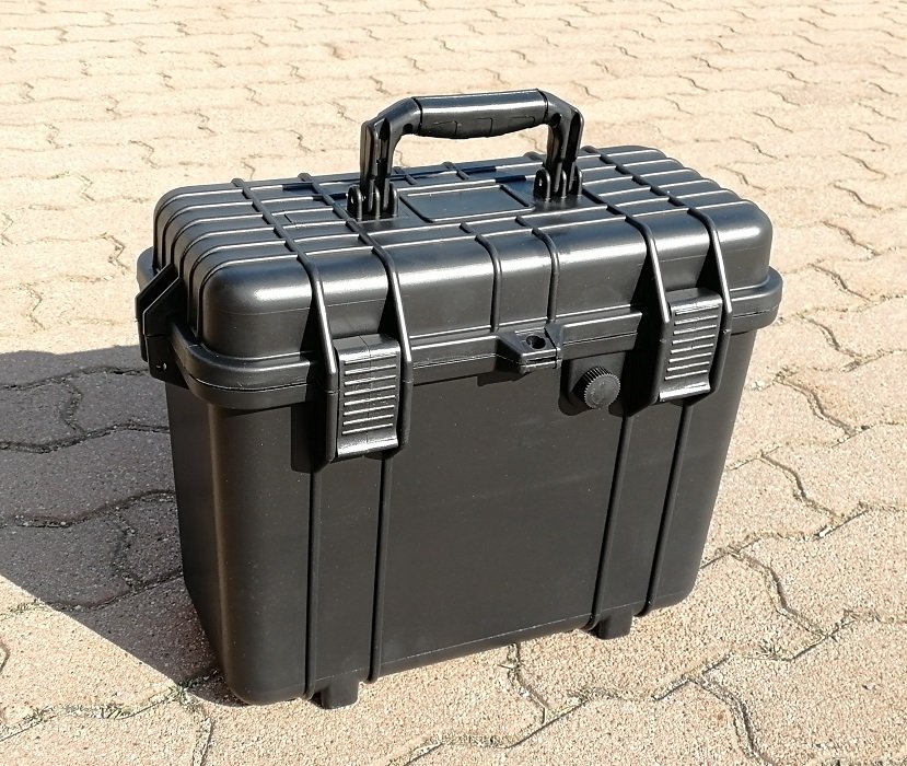 Vzal jsem na zkoušku dva kufry na zbraně (díky nízkému profilu se stejně dobře hodí jako bedna na věci na co se vozí napříč na zahrádkách). Až na větší množství výztuh je to kopie Peli Case 1720 před faceliftem a to včetně tvaru a provedení madel, lemů, otvorů pro zámky atd... Zpracováním směle konkuruje originálu včetně pevnosti a vodotěsnosti. Pojízdná, madla na třech stranách, čtyři přezky, otvory pro zámky. Provedení bez pěny. Rozměry cca 112.5 x 40.5 x 15.5 cm, vnitřní 106.5 x 34.5 x 13.5 cm. Cena 1800,- Kč