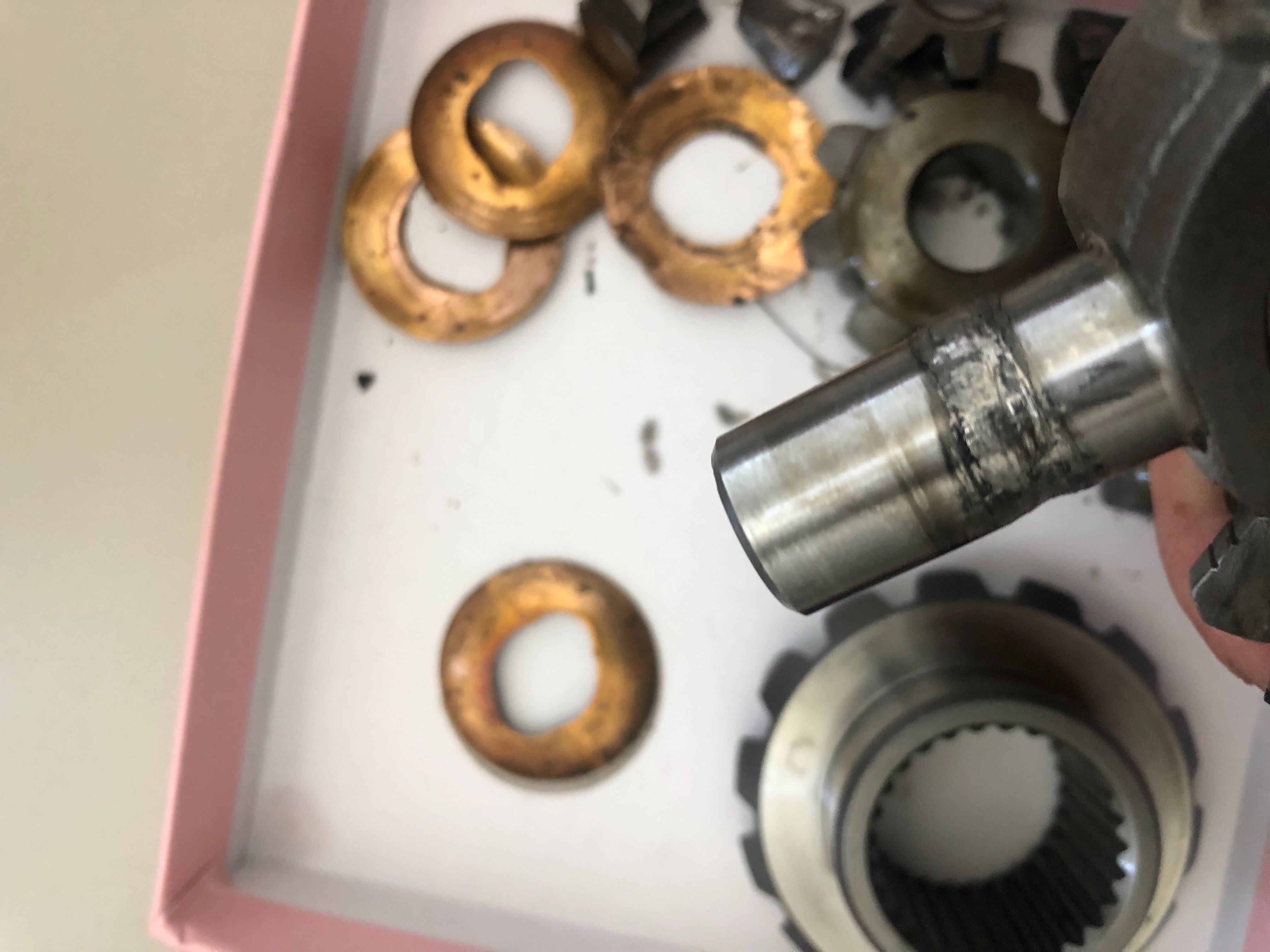 Jízda v terénu bez zařazené uzávěrky mezinápravového diferenciálu a velký a dlouhý prokluz jedné nápravy vůči druhé. To malé zubaté kolečko se potom točí jak zblázněné, až se na hřídeli přidře nebo připeče.