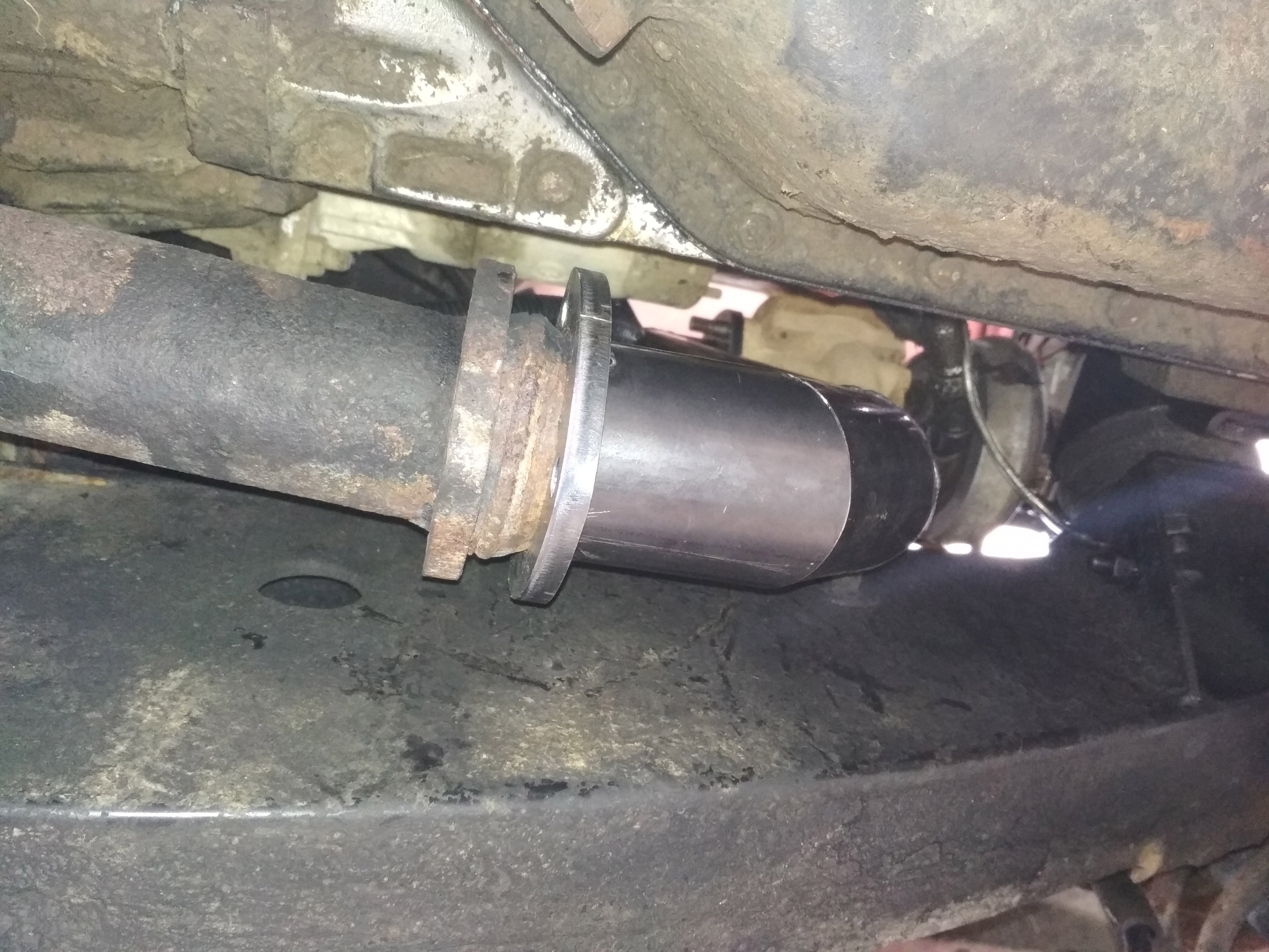 niečo z archívu: vyfukove koleno na mieru kvôli výmene motora v defenderi, povodne 19J za 200TDI z Discovery a prerobený napínak alternátora