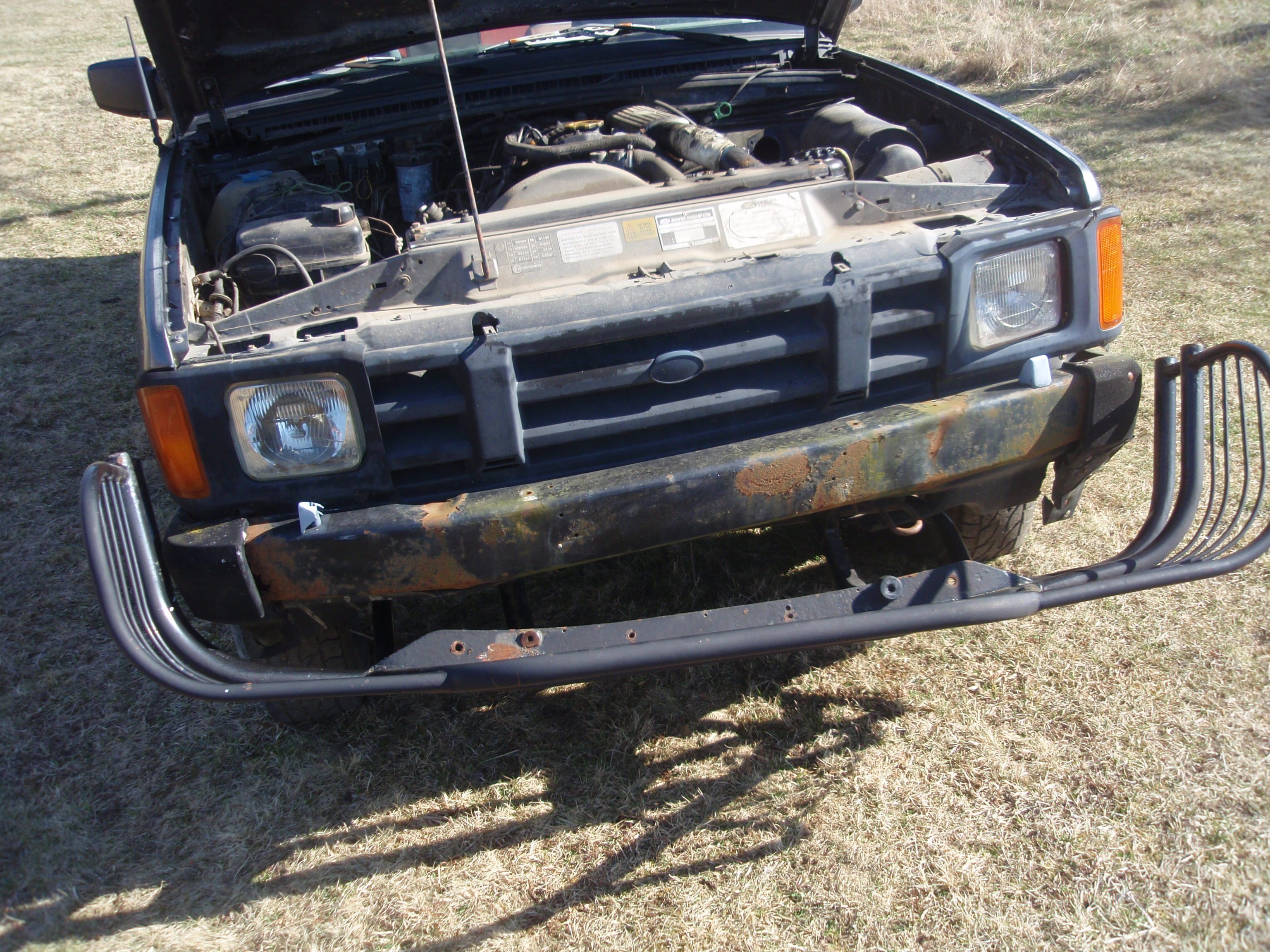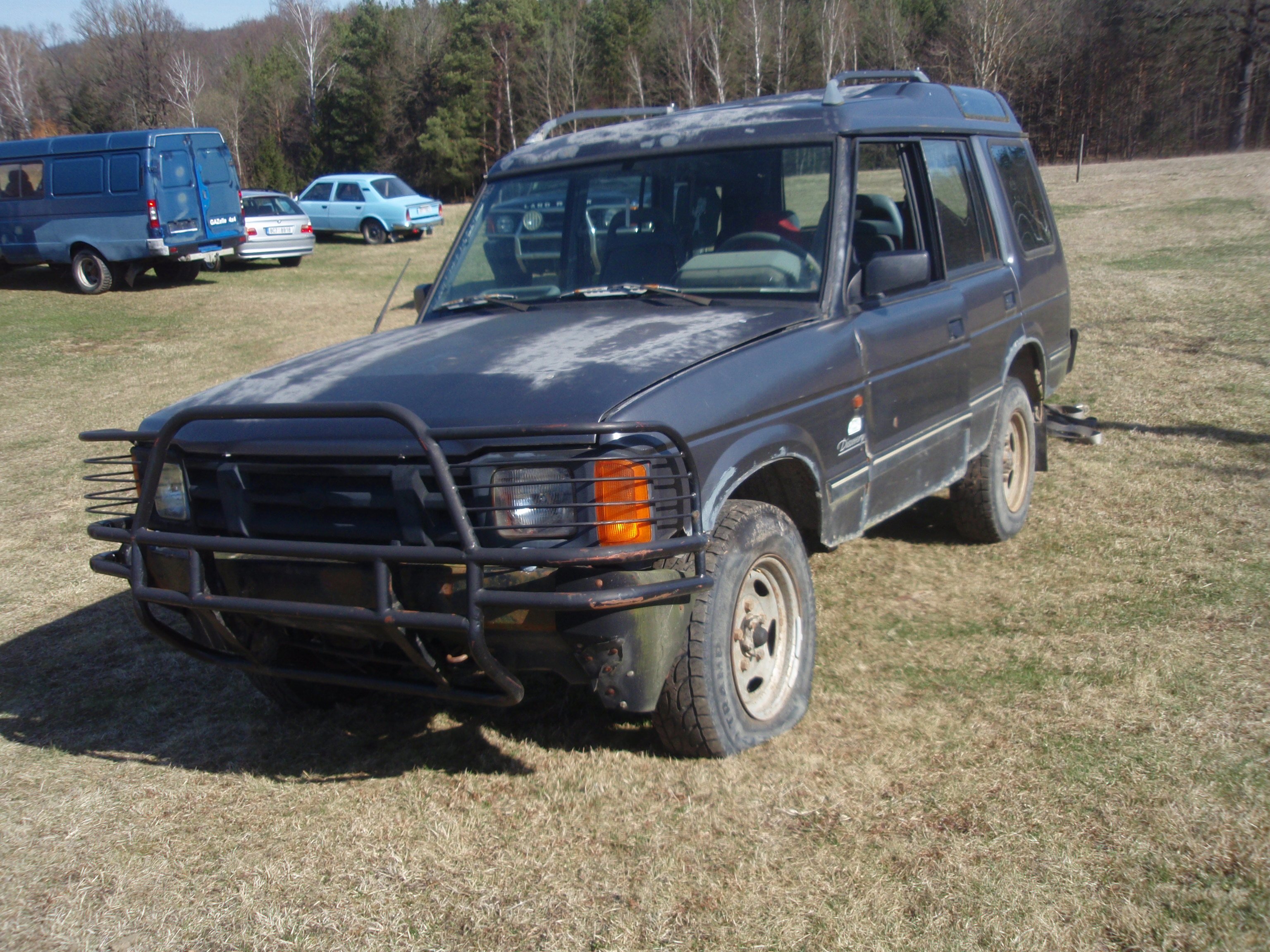 Nemyslel jsem, že se mi to stane, ale v nákupní horečce jsem vzal i jeden mimodruhový (pod kapotou není td5) exemplář, je to auto relativně komplet, ale fakt jen na díly, třeba prahy, podlaha a interiér, to vše je spíše označení prosotru, "kde májí být" prahy, podlaha a interiér. Nicméně motor, převodovka a další agregáty tam jsou. Stojí to na kolech, dalo se s tím zatáčet a myslím i brzdit a spojka spojovala, takže, když jsem sjel z podvalu, tak jsem normáně zařadil kvalt, aby to neodjelo. převodovky asi převodoji, kdy se naposled otočil motor nevím, popravndě nai nevím, jestli není nějakej kouslej, to možná zkusim s nim otočit starterem, kliček k tomu je, že by to běželo, to si netroufám odhadnout, ale prý to normálně přijelo k minulemu majiteli, ale je to určitě pár let. řidičské okénko je dole, a když jsem to přebíral, tak jsem z toho vyhnal kočku, když jsem to auto viděl na podzim, tak v něm rostl nějaký keřík, ale teď po zimně jsem ho tam neviděl, asi uvadnul.
