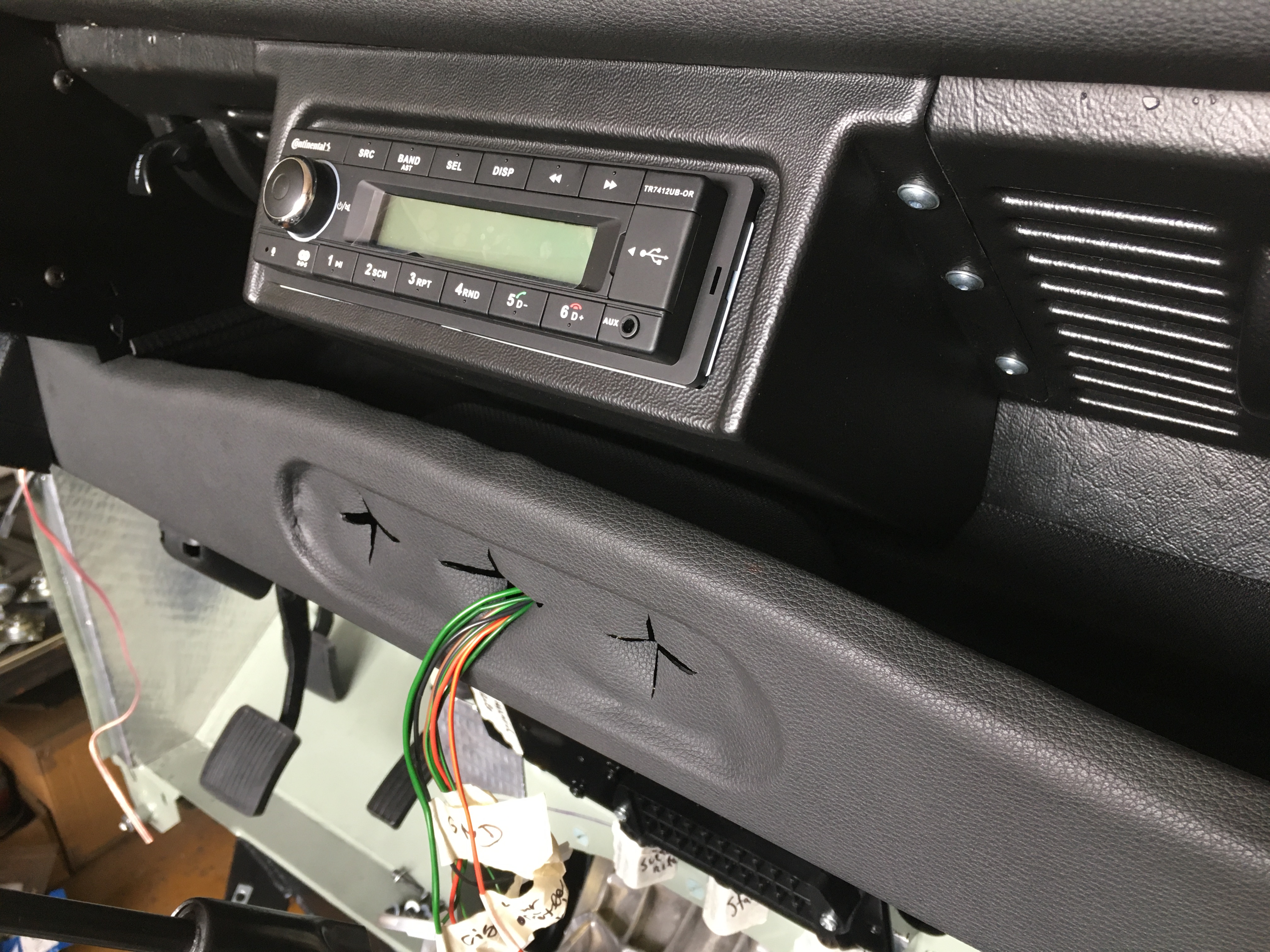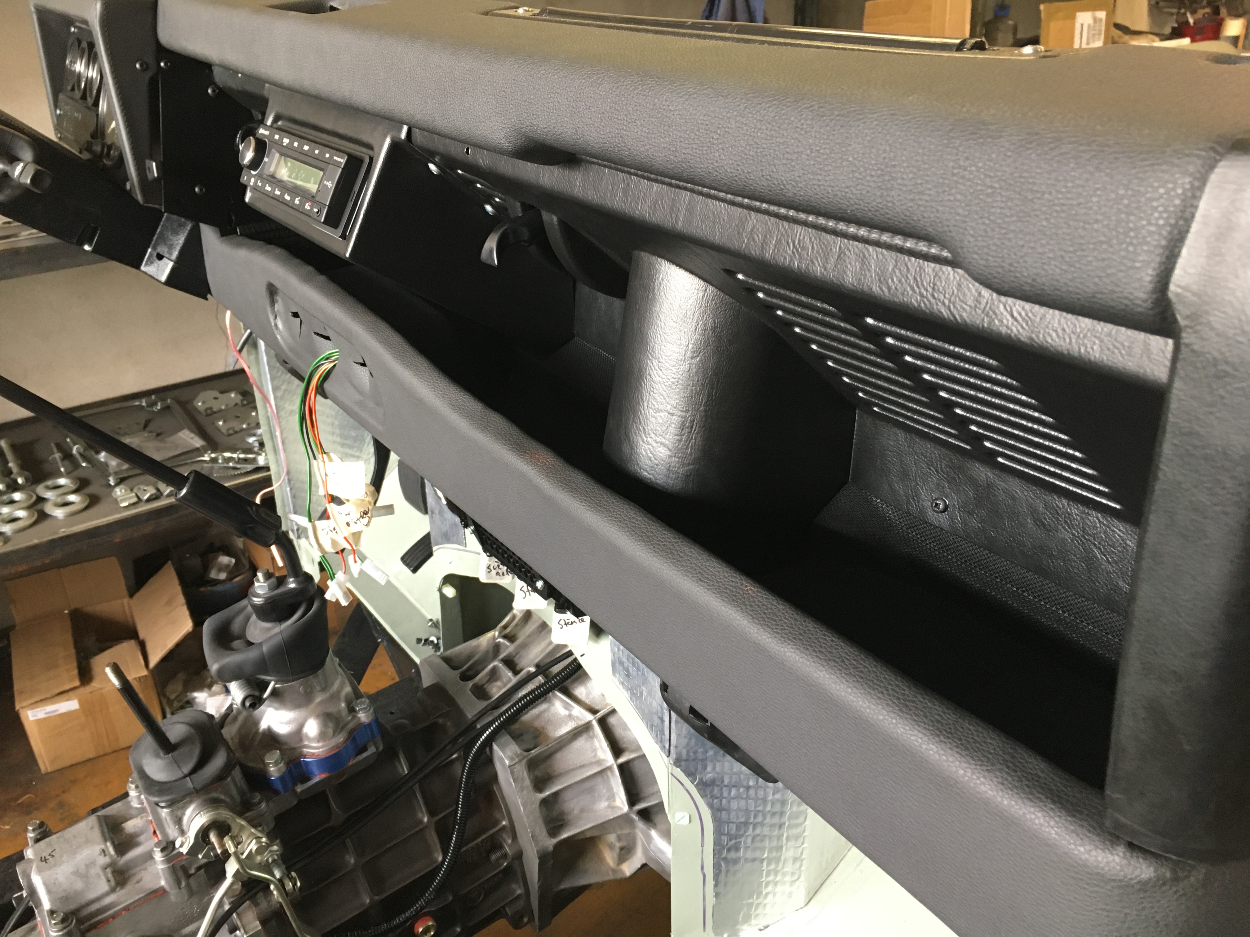 Mame tu mensi pokrok. Po vsech peripetiich jsem dorazil palubovku. Je tam teda jeste nejaka doladovacka, vymena srobu za cerne a takove detaily, ale to hlavni uz je. Velkou kapitolou je konzole na radio od mudu. Cca 3 hodiny jsem ji upravoval a vymyslel jak ji uchytit aby to nejak vypadalo. Vysledek posudte sami. Jeste cekam az prijde z Anglie lista a bude to cajk...