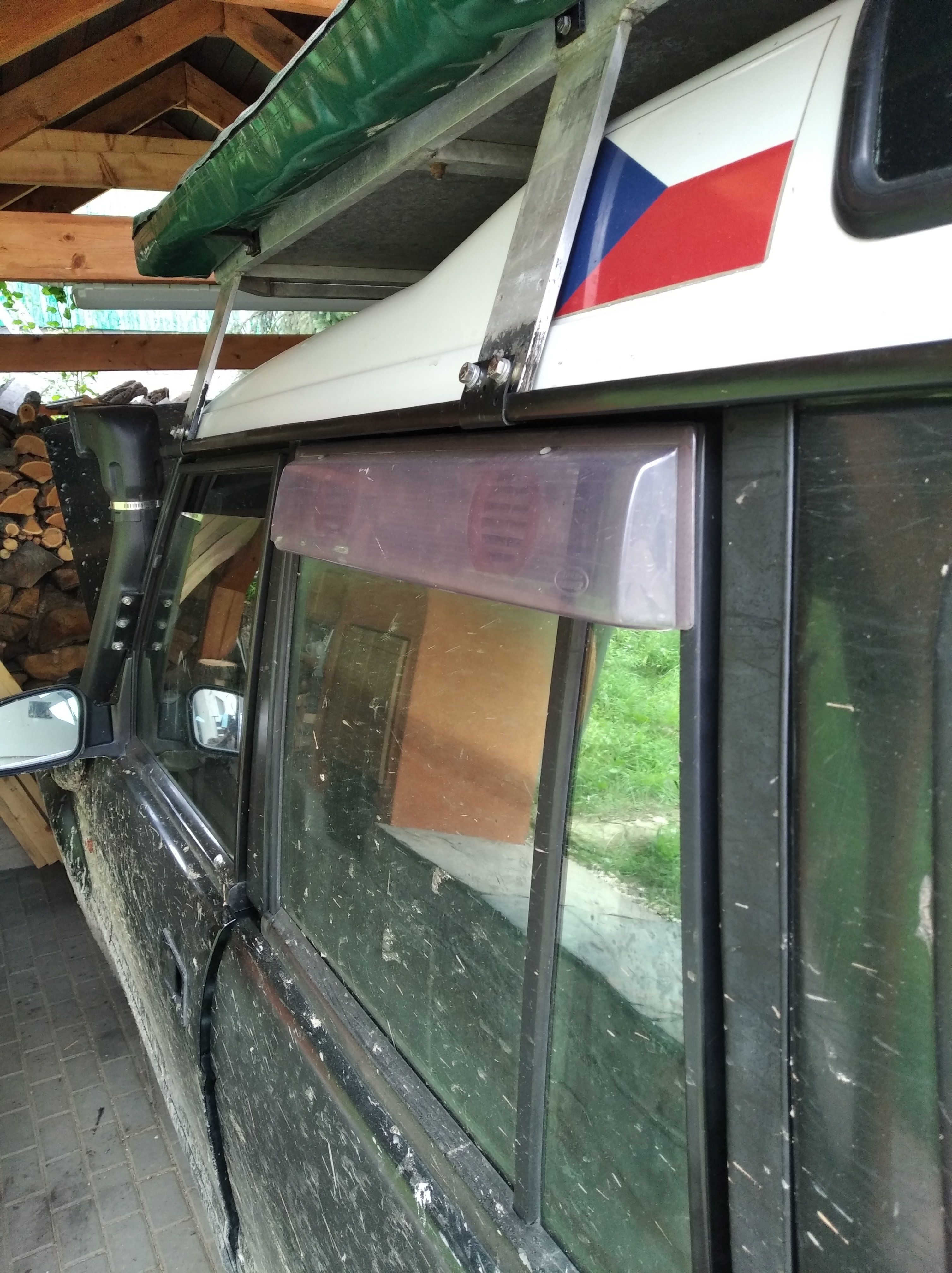 DI 300 Tdi: 4"lift, bodylift 2,5cm, BFG MT 285/75 R16, pevnostní nárazníky, prahy, přídavné světla, snorchel, CB, 2 navijáky, roll cage, kryty dif., žebřík, nájezdový plech, axle lock, true track, bufík atd