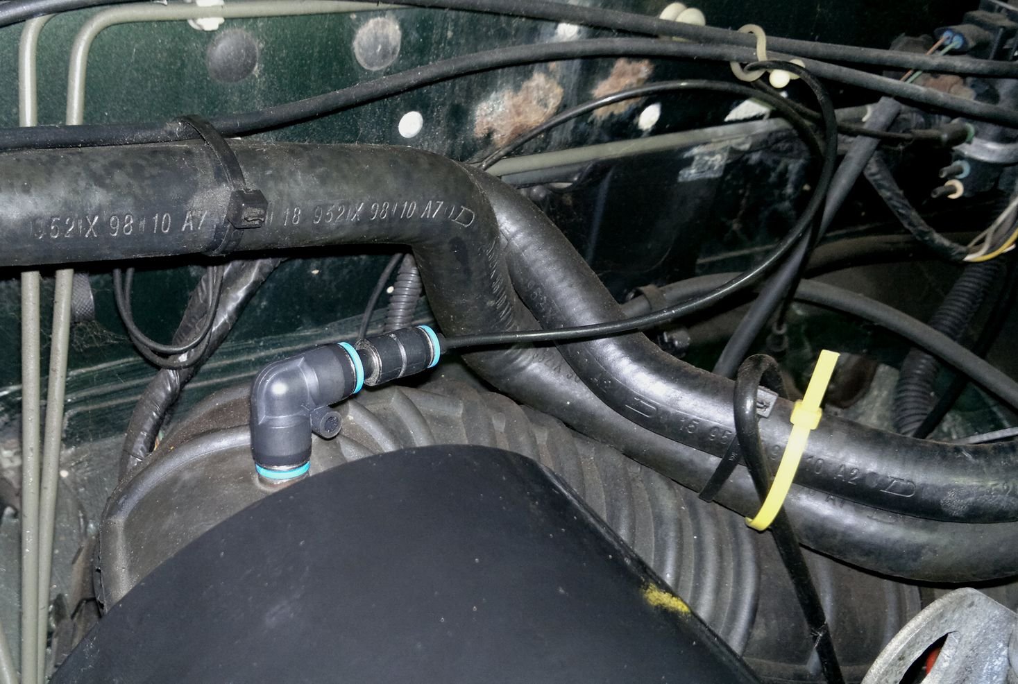 Pokud by jsi na autě měl šnorchl, ta celou tu hadicoslávu vyhoď a dej tam jenom kus rovné hadice. Ten ventil dole stejně netěsní.