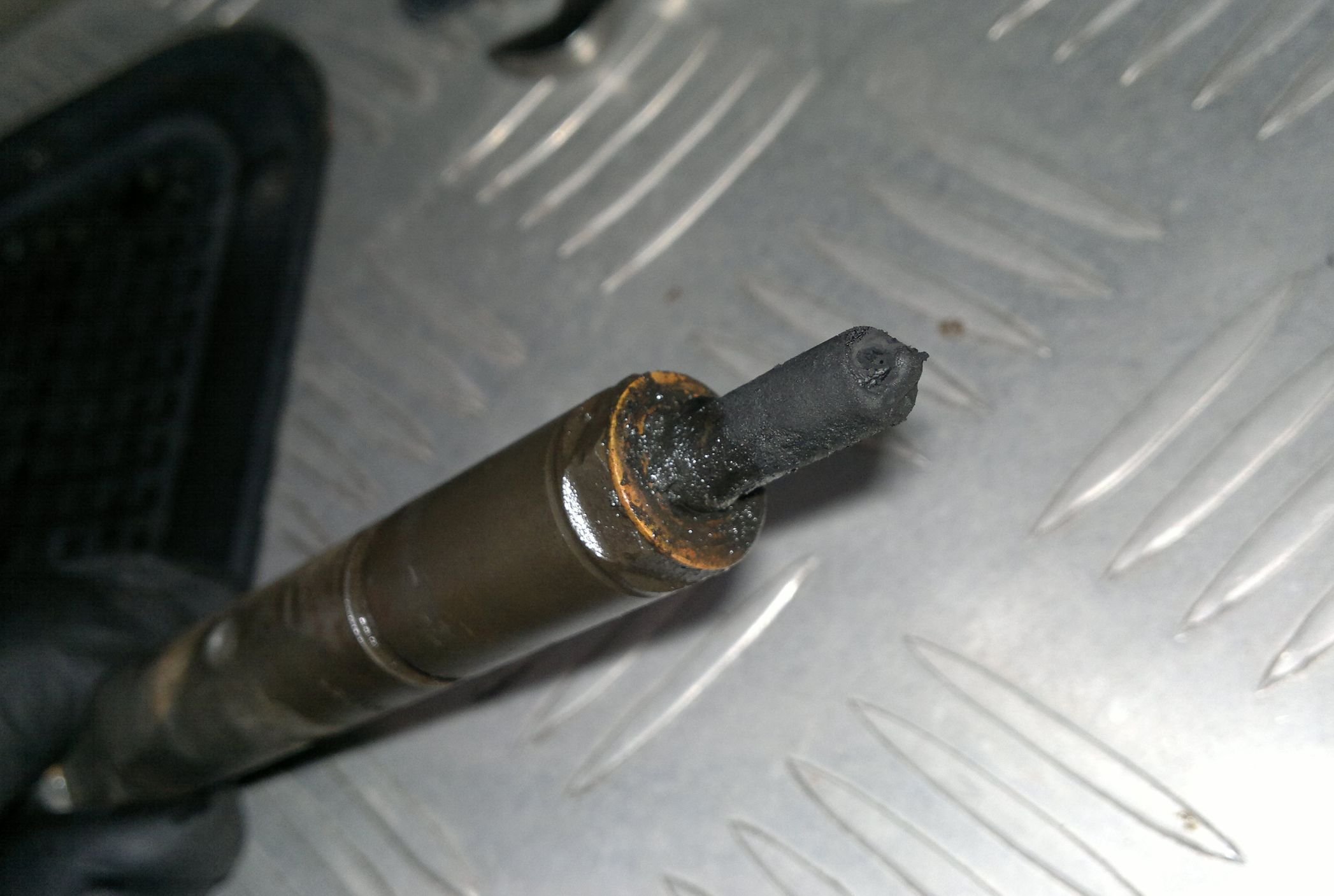 Všechny vstřiky vypadaly po vyndání takřka stejně - černá bakule sazí na špičce. Dokonce i ten, který jsem rok předtím vyndal pro kontrolu, byl docela slušně "očouzený" a to moc nenaběhal.