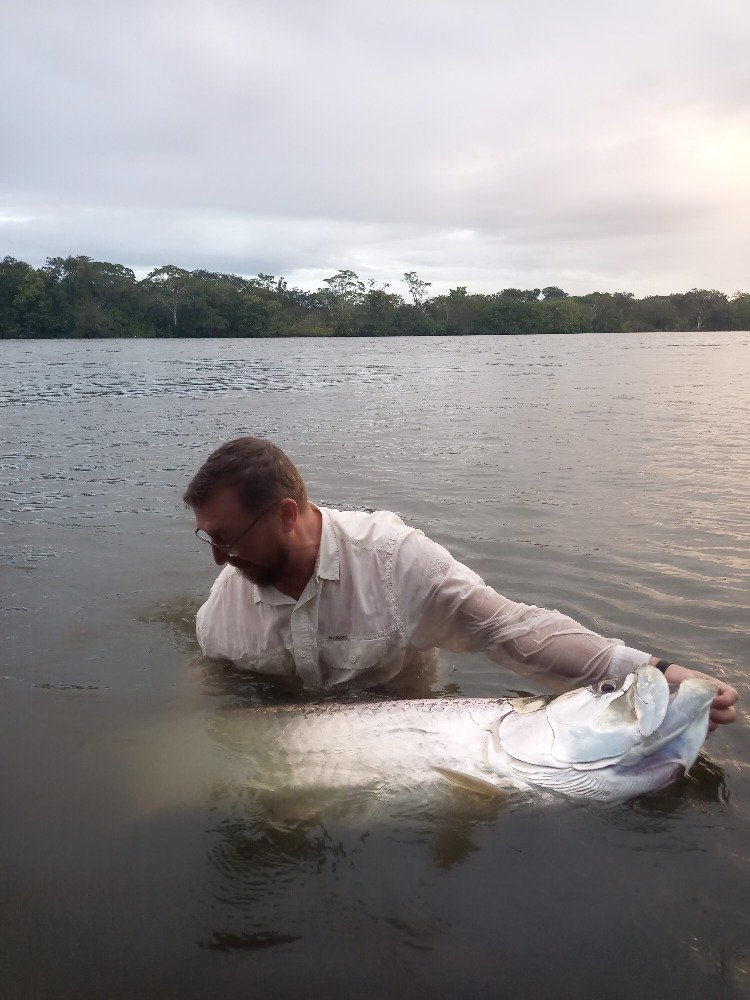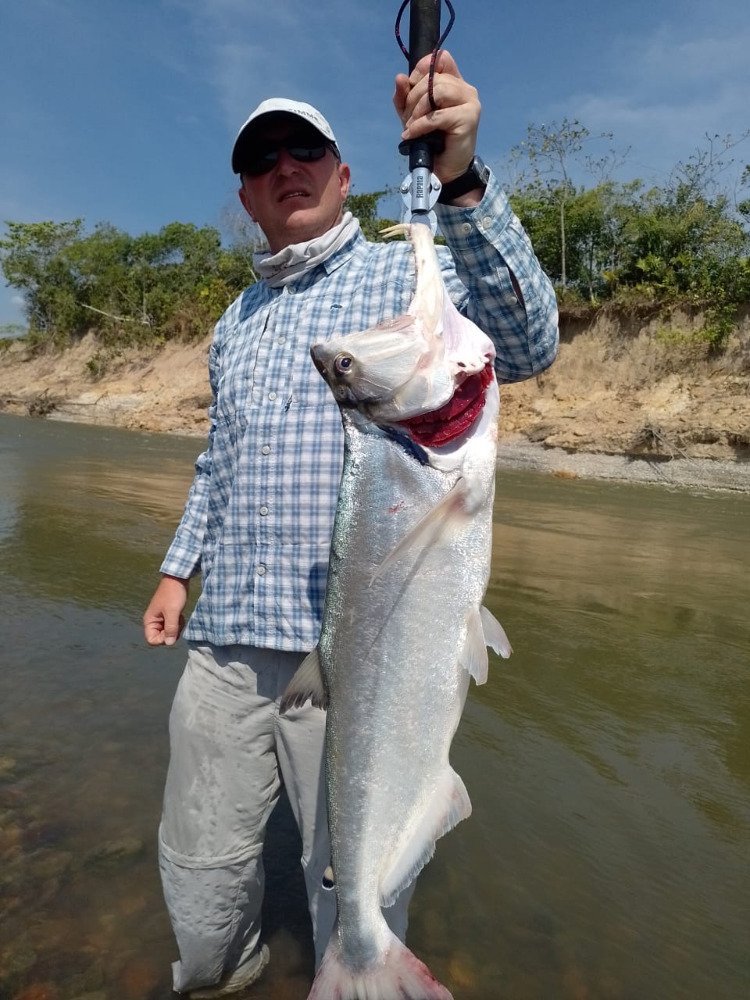 El Sabalo Real / Tarpon atlantský chycený hluboko ve sladkých vodách Rio San Juan, Nicaragua.