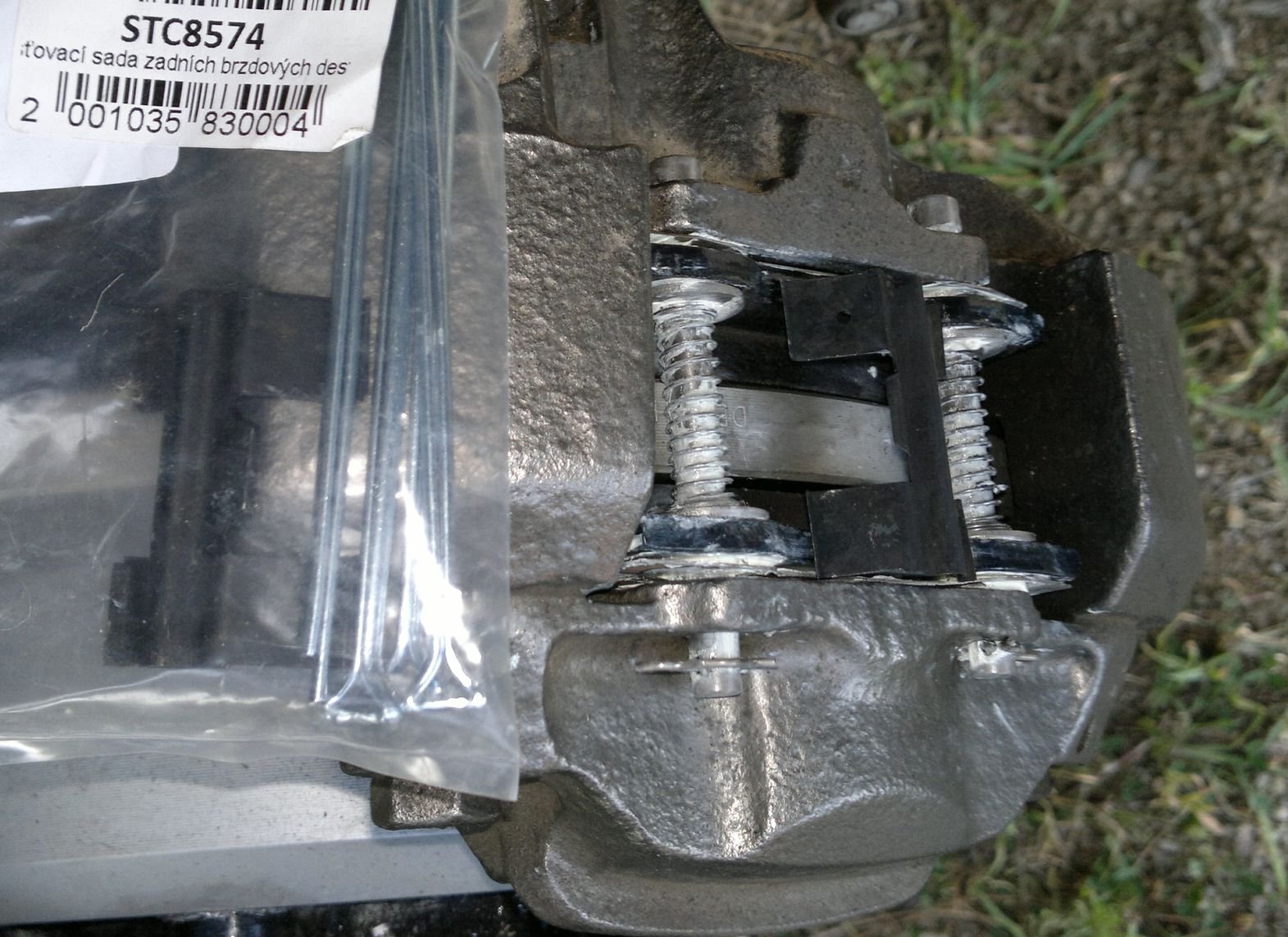 Nedalo mi to a zkusil jsem objednat zajišťovací sadu STC8574. Ovšem po přiložení na destičky se ukázalo, že jsem vedle jak ta jedle. Tadle sada je určená pro bzdiče 90kových Defíků, které používají jinak tvarované a uchycené destičky - SFP500190. Pro jejich nasazení zde, bych musel ty moje destičky složitě upravovat.