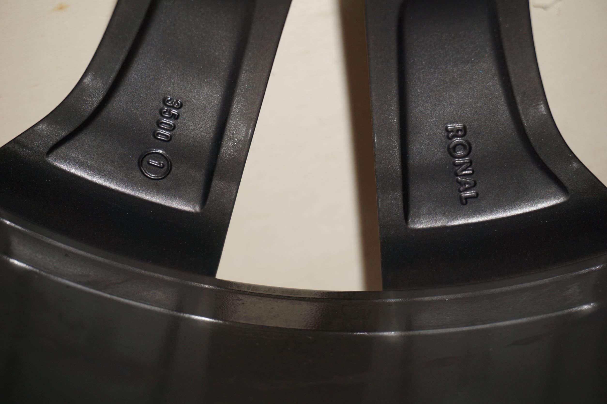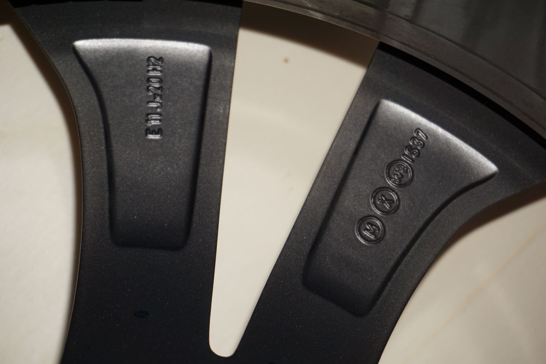Lukáš měl pochopitelně pravdu, Takže to jsou dvourozměry, dva kusy šíře 11 palců a dva 10 palců, ty 11 pacové mají obute 315/35 ty desetipalcové mají 295/40 nebo tak něco... Nicméně tedy tím, že jsem vzal do ruky i zbylá tři kola jsem zjistil, že ta jsou navíc poškrábaná, to na prvních fotkách je asi nejlepší, zbylá tři kola mají škrábance viz foto, myslím, že jsem nafotil všechny škrbance v součtu na těch kolech.