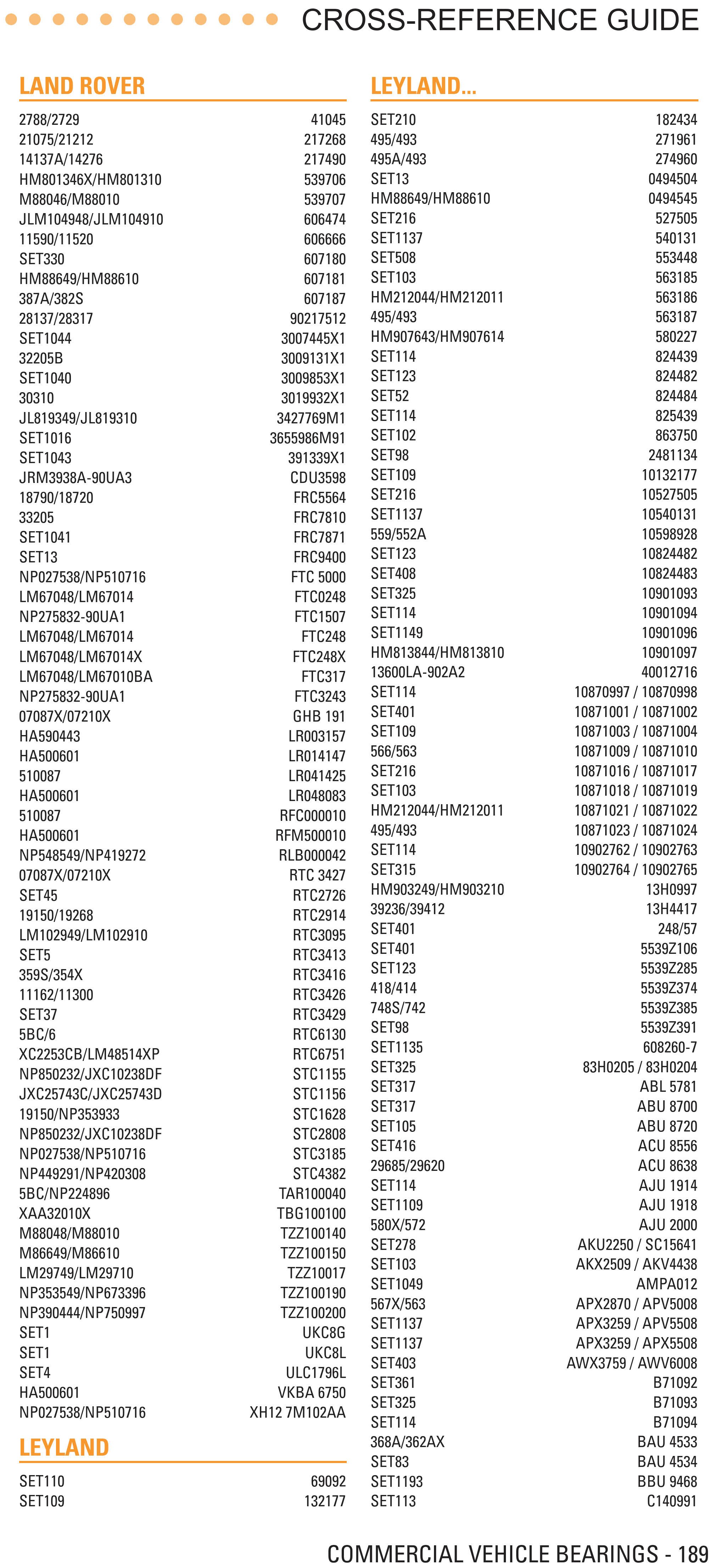 Protože jedním z nejrozšířenějších výrobců ložisek pro LR je mimo jiné Timken a taky je v současnosti asi nejzažitějším etalonem kvality, tak tady je odkaz jejich katalogovou sekci.