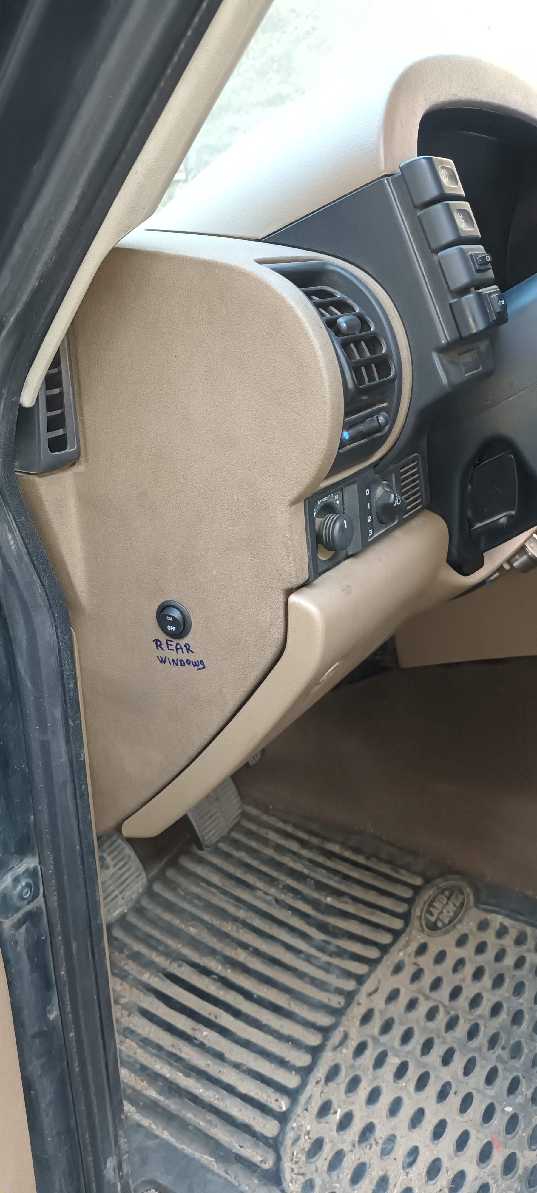 Vypínače už jsou tam mnoho let, celkem se to osvědčilo na věci, co se nepoužívají často, jenom jsem musel posunout stropní světlo a udělat pod něj "podstavec". Tím že auto má elektrická střešní okna, tak nezavazí klička, a pro posun světla je dost místa. Vypínače tyhle malé kolébkové, velké hezké prosvícené Carlingy se tam na hloubku nevlezou, navíc před lety tu ještě od Číňana nebyly jejich kopie za rozumnou cenu.