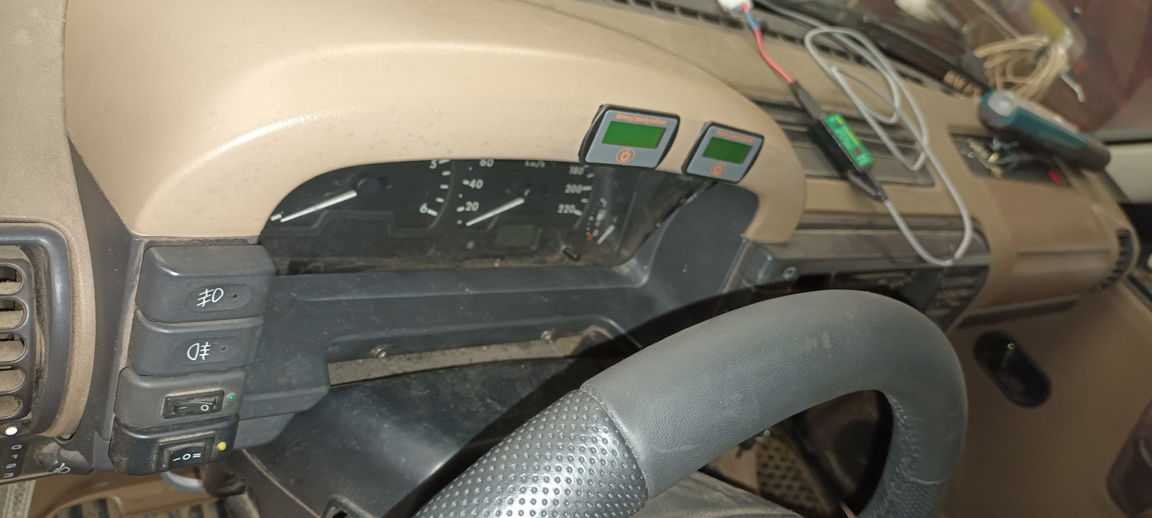 Po vařiči došlo na první z naplánovaných drobných úprava elektro - doplnit vypínač, aby se alespoň zadní okna daly stahovat i bez zapnutého klíčku, doplnit druhý vypínač, aby se podobně daly i bez zapnutého klíčku ovládat střešní okna - při spaní v autě to bude o hodně příjemnější si okénko zavřít, když přijde medvěd, než se nejdřív snažit otočit klíčkem. A poslední je montáž soláru na kapotu - zatím vymyšleno to nejhorší, kam dát MPPT měnič - pod volant, na vnitřní stranu dvířek.