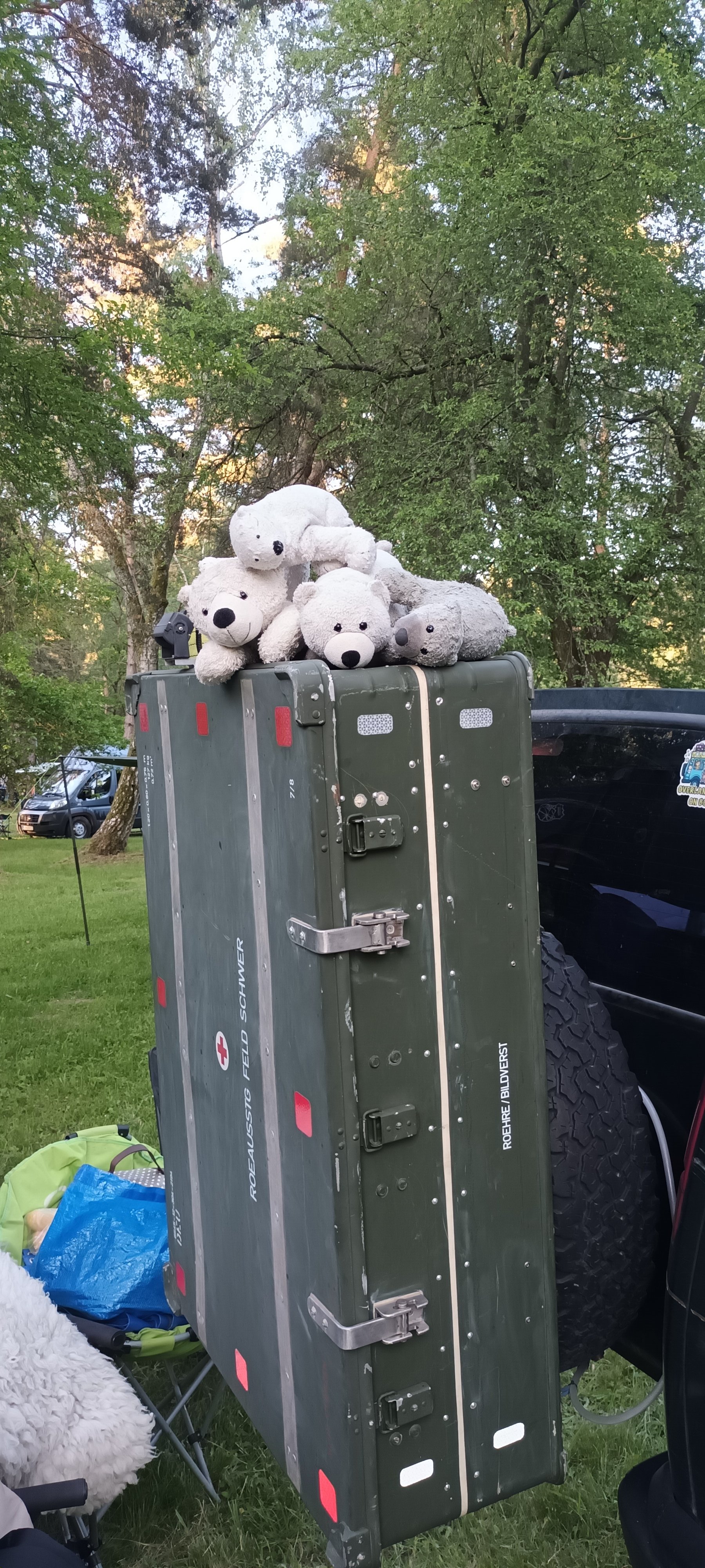 Na Overlandu se bedna na kufru celkem osvědčila, až na malé drobnosti, jako chybějící odkládací plocha na nádobí a háček na hadici od vody. Sklopný stoleček doplněn, tentokrát nic, co by se muselo odšroubovávat nebo jinak chystat, prostě se jenom sklopí.