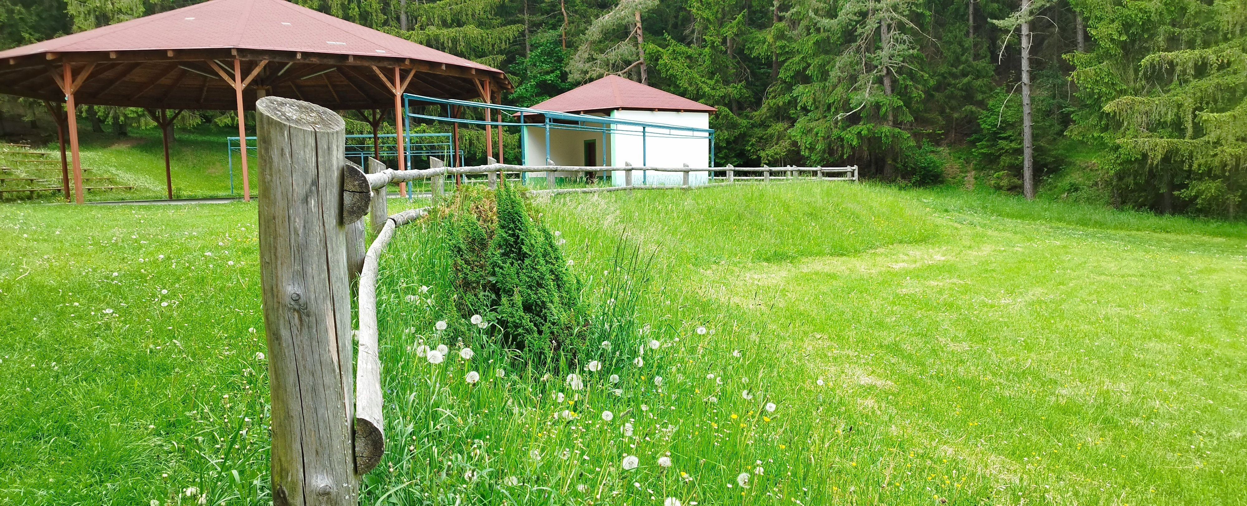 Pekne prostredie : luka pod borovicovym lesom s miernym svahom.