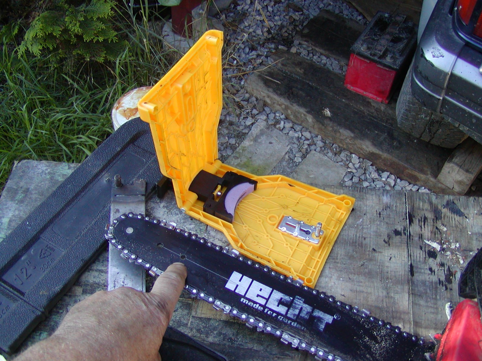 Jo je vidět že je to super mašina a naostří to zub přesně jak má tedy dobře. Všeci jsou pitomci a dosud to dělali debilně pilníkem. Jen je blbé, že tím brousíš jen hřbet zubu nic víc a po několik akcích ten zub totální zničíš.