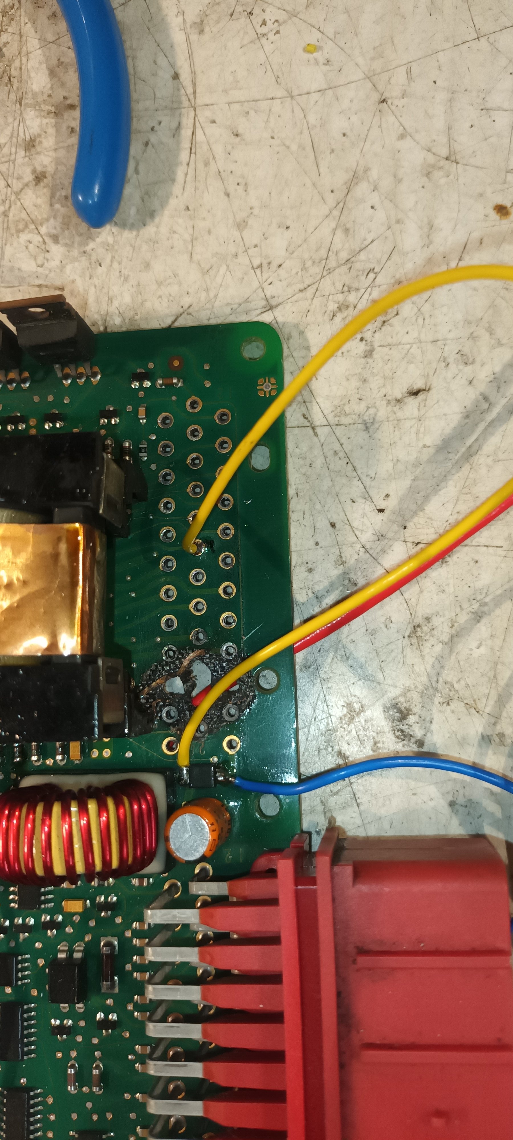 Vypadá to, že i druhá propálená jednotka bude fungovat. Chybějící spoje se daly nahradit dráty. Už to jenom vložit zpátky do obalu a otestovat v autě.