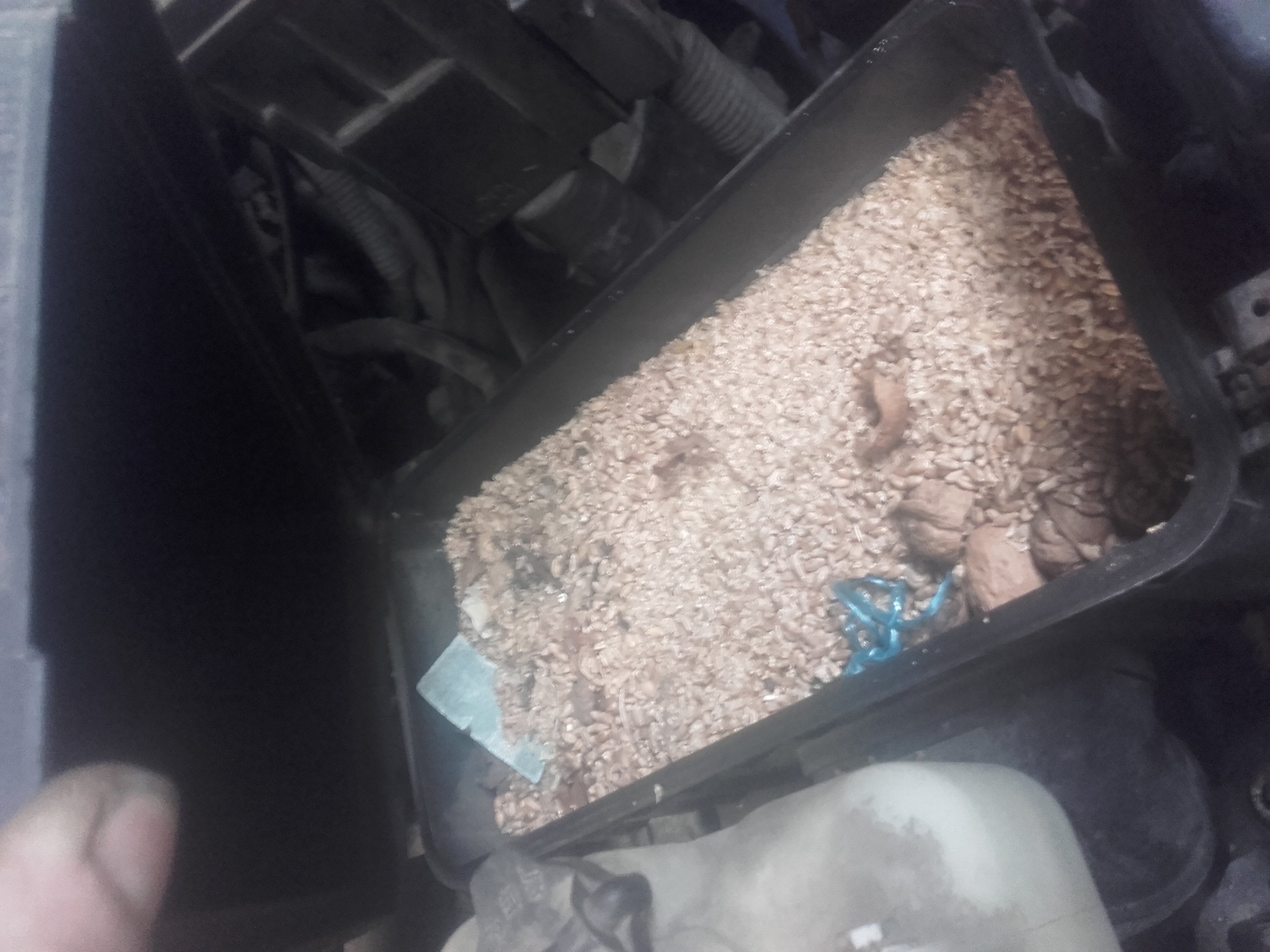 Podobné jsem to už viděl i v jezdícím autu, s tím rozdílem, že sláma a tràva byla za filtrem, protože někdo špatně zavřel dekl.