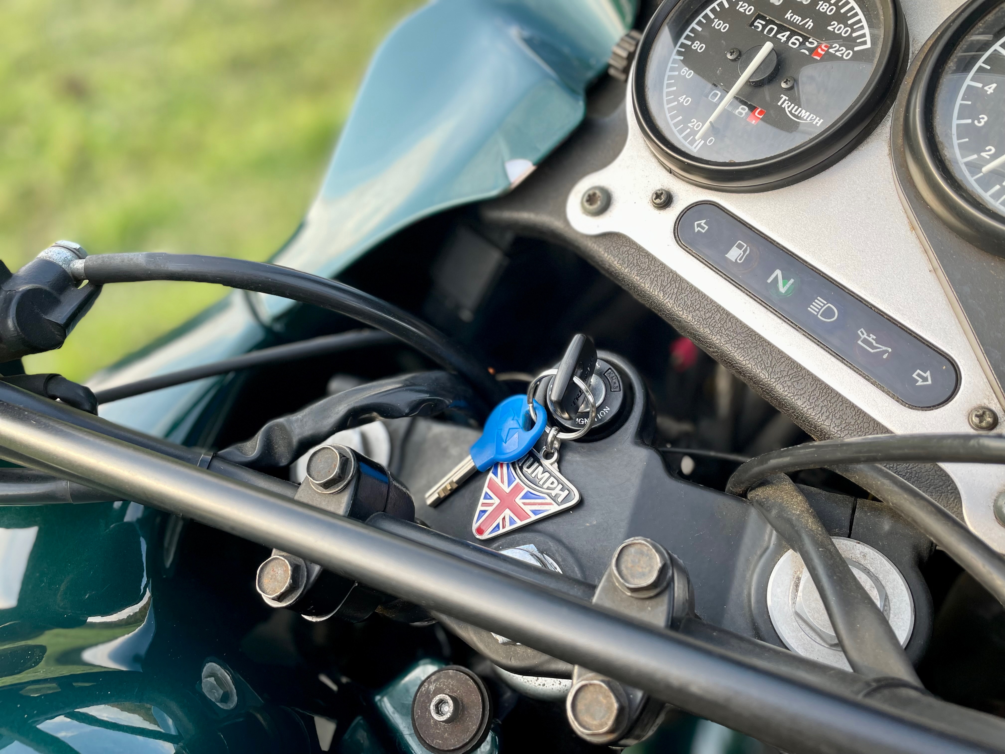 Jedná se o Triumph Tiger 900 (T400) z roku 1997. Najeto má cca 50 500 km. Motorku mám dva roky, moc jsem s ní nestihl najezdit, protože do toho přišly rodičovské povinnosti a vzhledem k tomu, že ještě pár let budou, tak nechci, aby víc stála, než jezdila. Motorka mnou ježděna za hezkého počasí na výlety po okolí. Vzhledem k věku už však nějaké šrámy samozřejmě má.