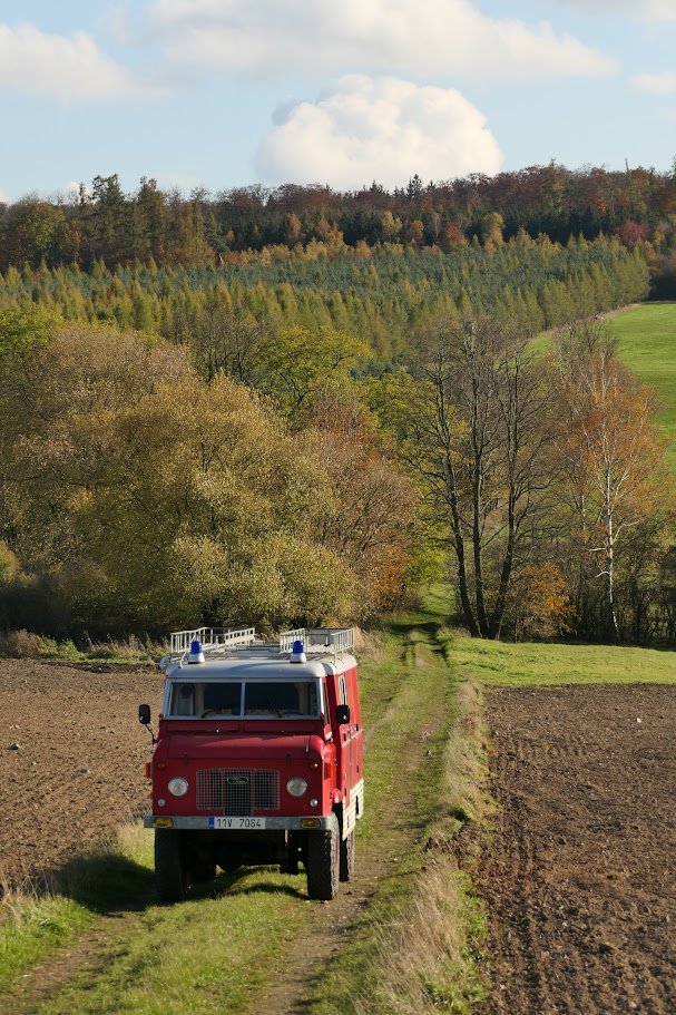Včerejší výlet za vesnici - Jarda projížděl auto, na kterém dělal motor, tak jsem vyvenčil Obludu