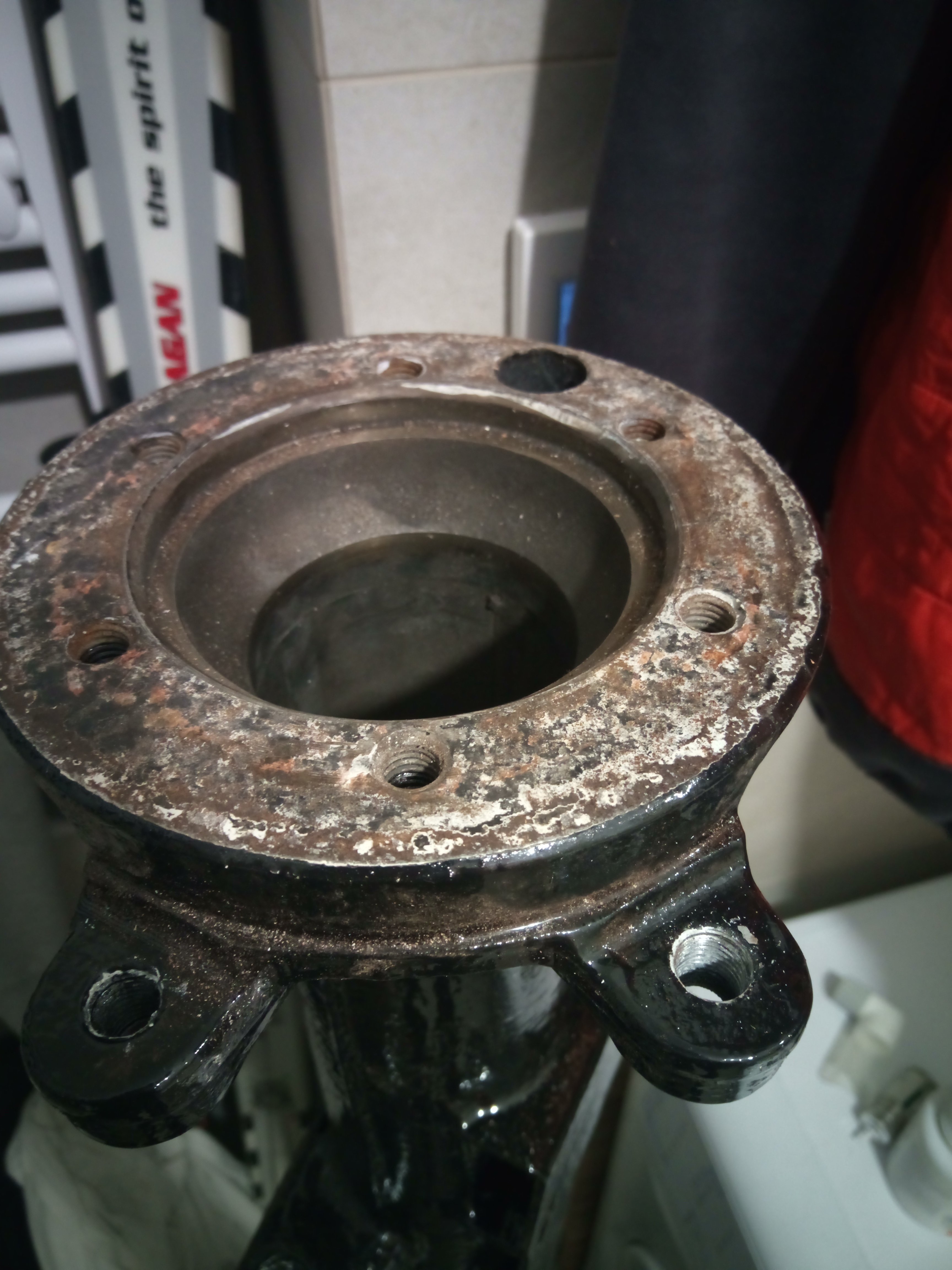 Na rrc prehadzujem zdanu napravu. Jedna sa o typ s abs a kotucmi. Sroby z povodnej napravy M12x1.25 mi nejdu zasrobovat do novej napravnice. Napravnica bola sopovana, trocha zatieklo aj do zavitov.