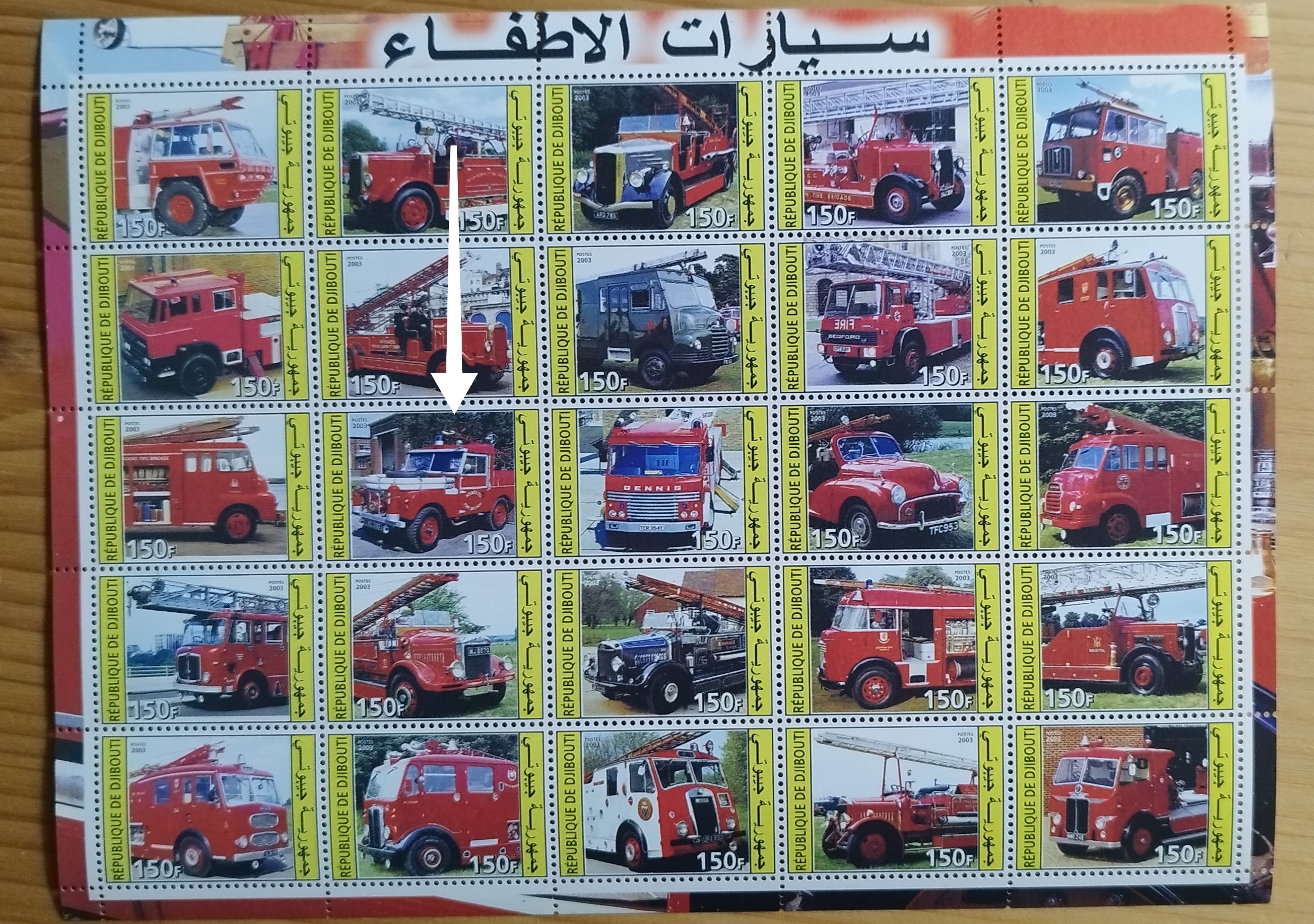 Prisli mi dva znamkove aršiky z roku 2003 s temou hasičskych aut z Africkej krajiny Djibouty na ktorych je spolu 50 znamok.