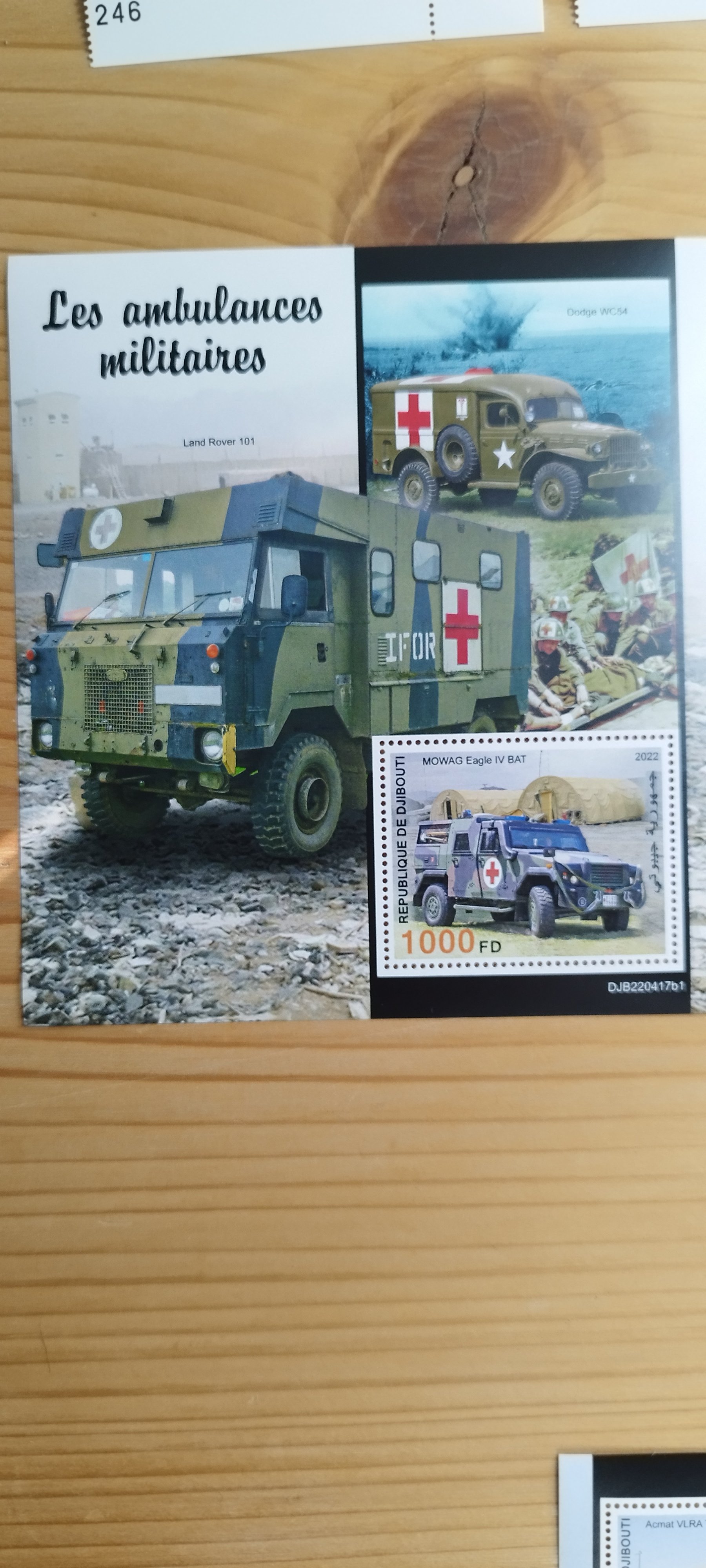 Na aršikoch z nametom vojenskych sanitiek z Rebublique de Djibouti (2022), je vidno LR Defender 130 "sanitka" a LR 101 Forward Control v uprave "sanitka" ktore vsak niesu predmetom znamky.