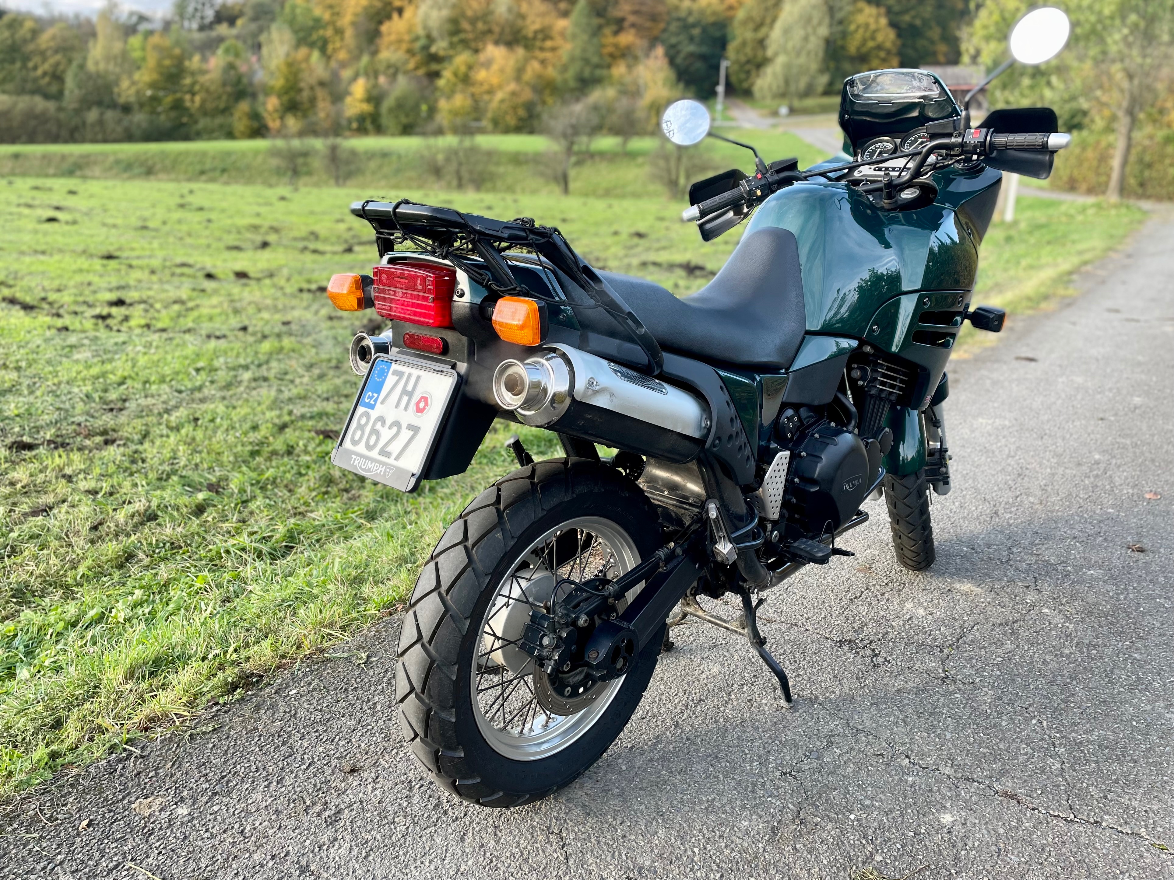 Jedná se o Triumph Tiger 900 (T400) z roku 1997. Najeto má cca 50 500 km. Motorku mám dva roky, moc jsem s ní nestihl najezdit, protože do toho přišly rodičovské povinnosti a vzhledem k tomu, že ještě pár let budou, tak nechci, aby víc stála, než jezdila. Motorka mnou ježděna za hezkého počasí na výlety po okolí. Vzhledem k věku už však nějaké šrámy samozřejmě má.