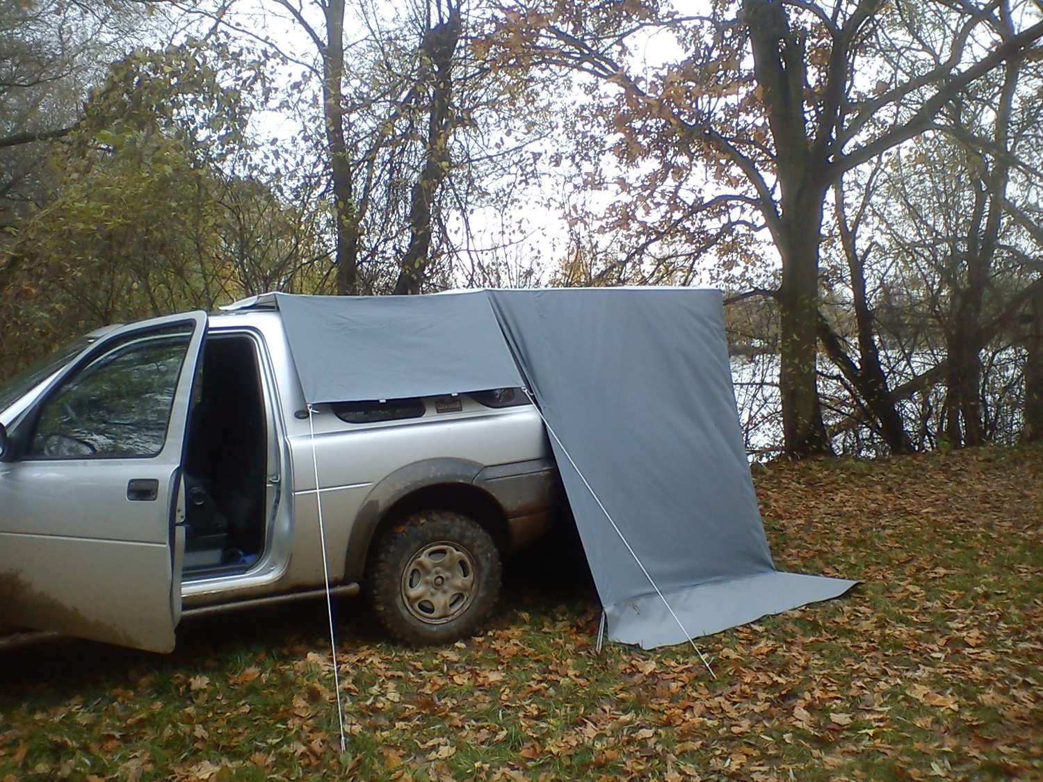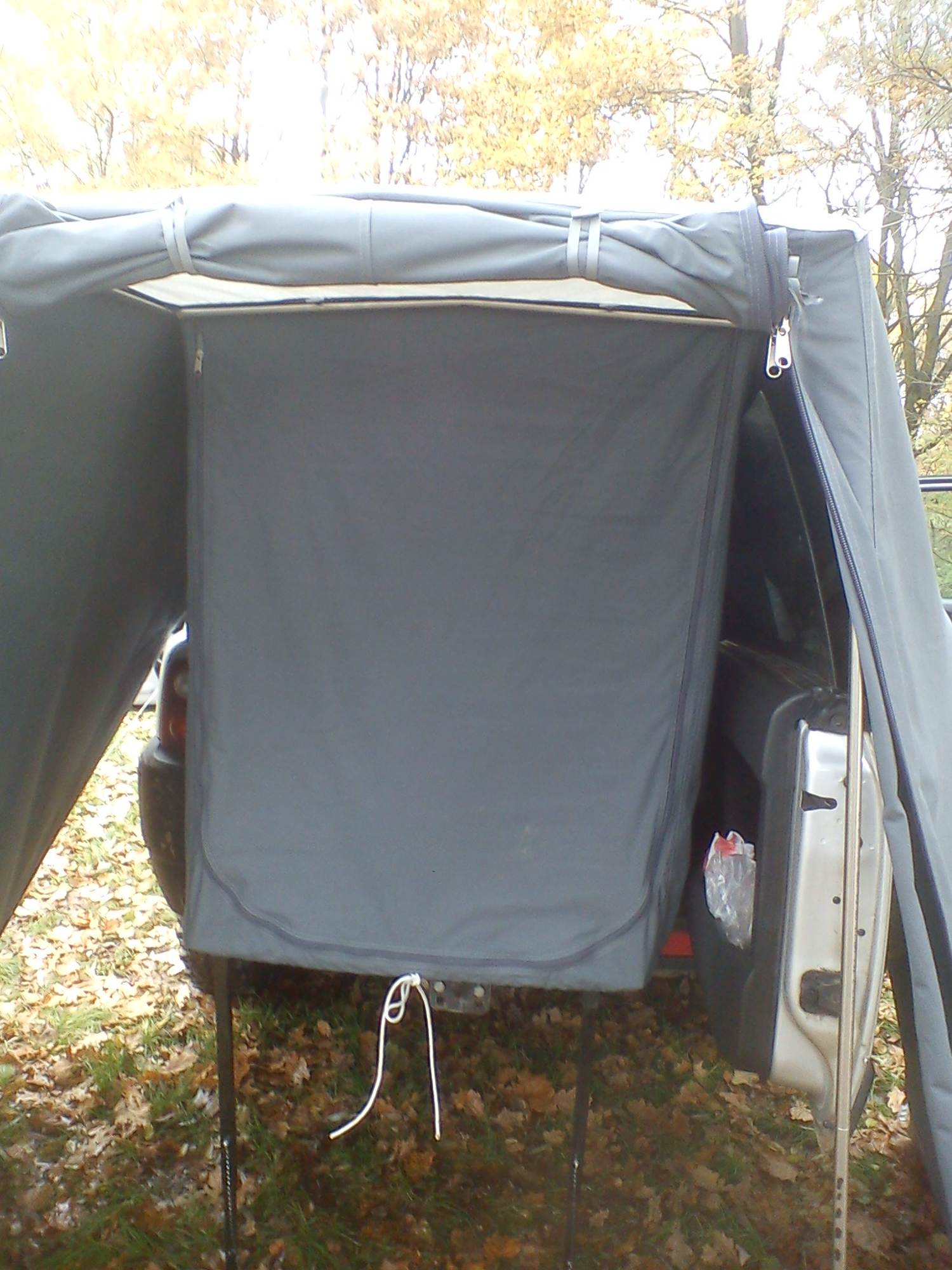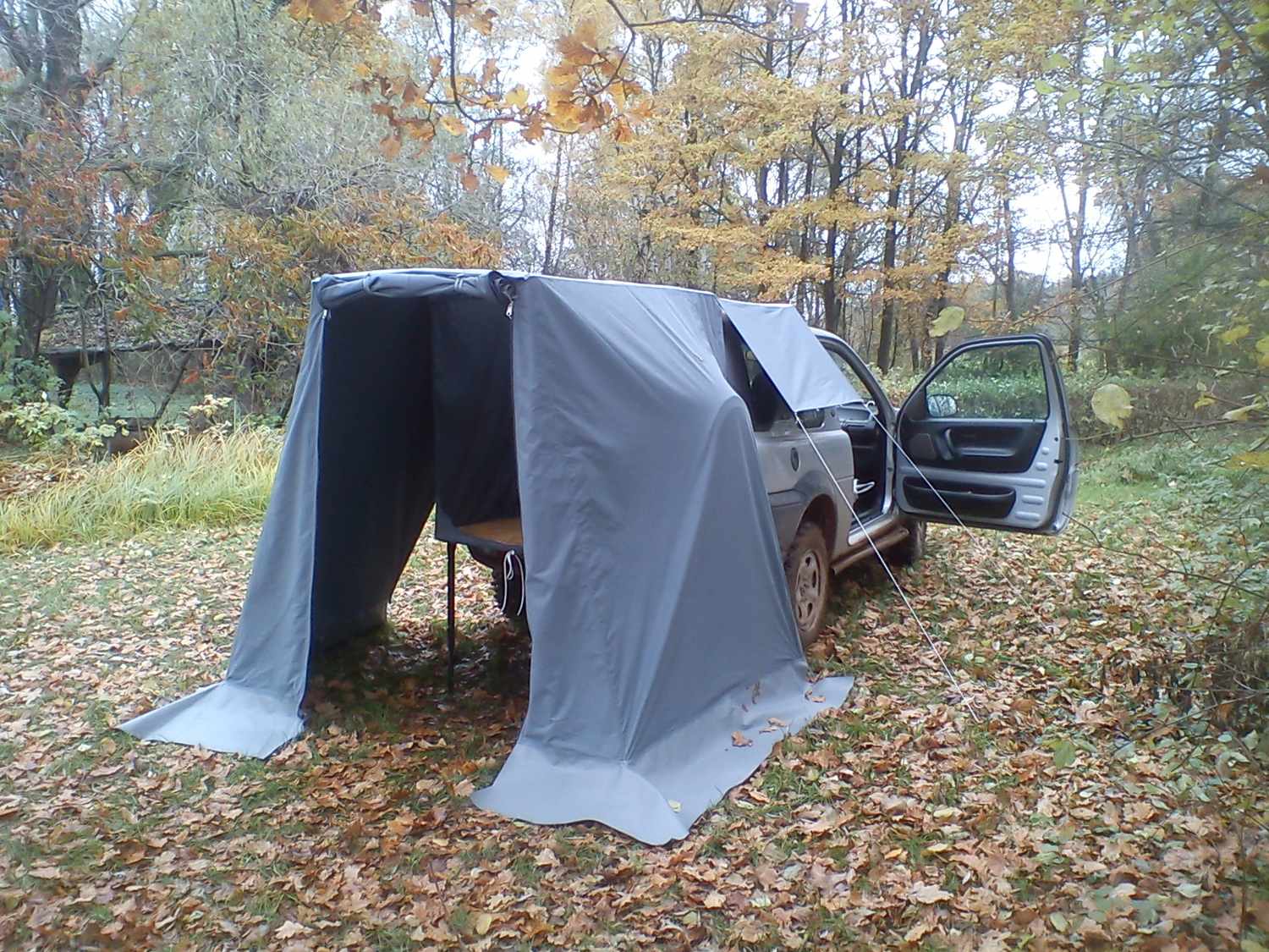 Tak po delším snažení mám spaní ve Free z 95% vyřešeno. Nerezovou samonosnou konstrukci jste asi už viděli (bez nutnosti kolíkování trubek,stabilitu zajišťují trny a kožené zapouzdření vrchní krycí plachty),přidávám pár foto kompletního řešení i se (stanopřístřeškem). Upozorňuji že stan není řádně napnutý bo sem spěchal abych nezmokl.Na střechu je použit zesílený poloprůsvitný nepromokavý materiál,zbytek plachtoviny je klasická stanovka. Spodek který leží na zemi je z vysoce odolného pogumovaného materiálu. Ukotvení k zemi je pomocí tzv. žebříků,zavírání obou(dveří) na kvalitní oboustranné zipy,líbí se mi možnost vyrolování a zajištění obou dveří. Zbývá mi dořešit utěsnění vnitřního stanu kolem ložné plochy(to je těch zbývajících 5 %). No ale to už mám v hlavě. Systém dvojích dveří jsem zvolil vzhledem k nutnosti celoročního používání...no v zimě ale radši nějak přitopím...