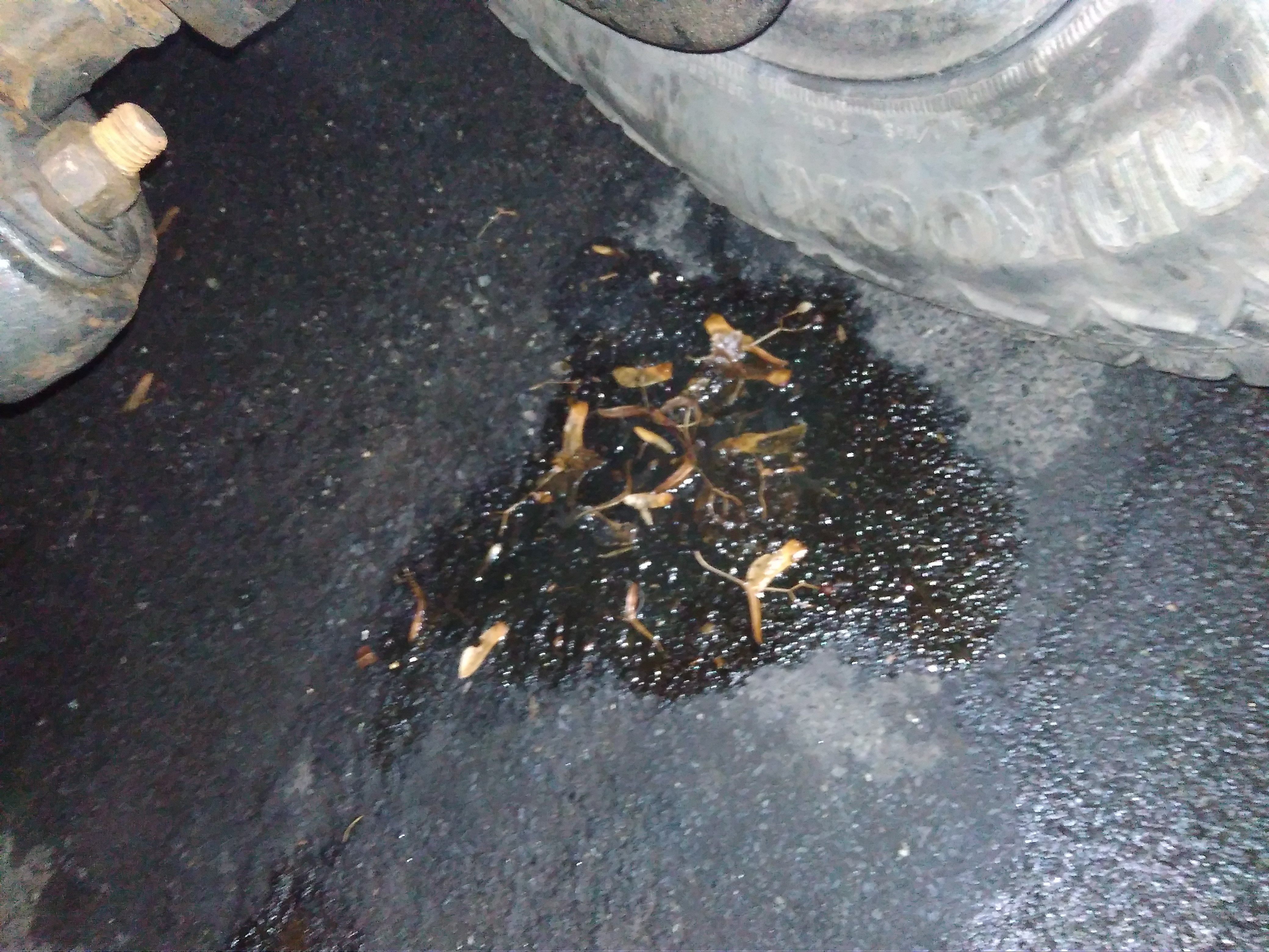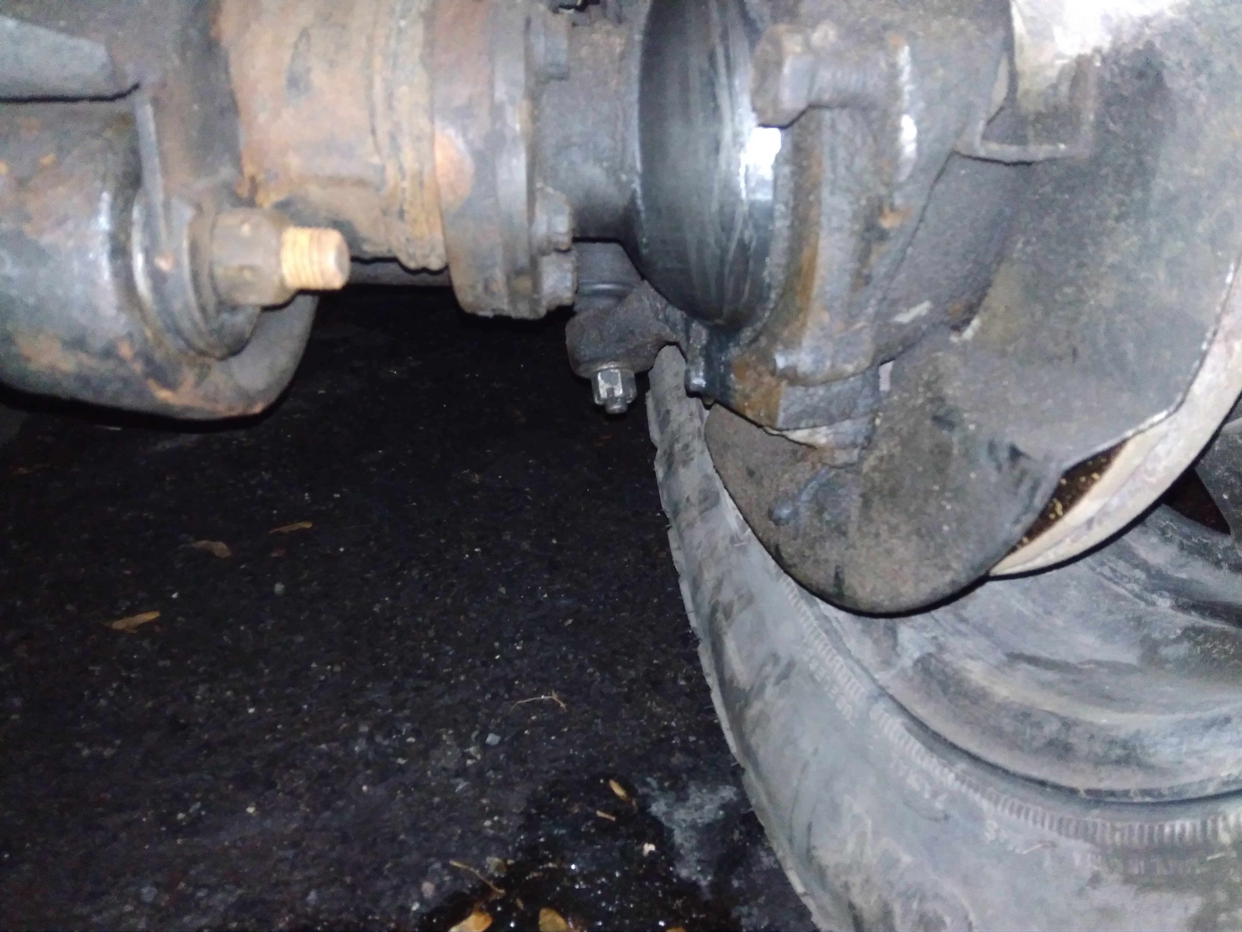 pod kolem (rejdovou koulí) je kaluž zeleného oleje asi gufero na poloose.